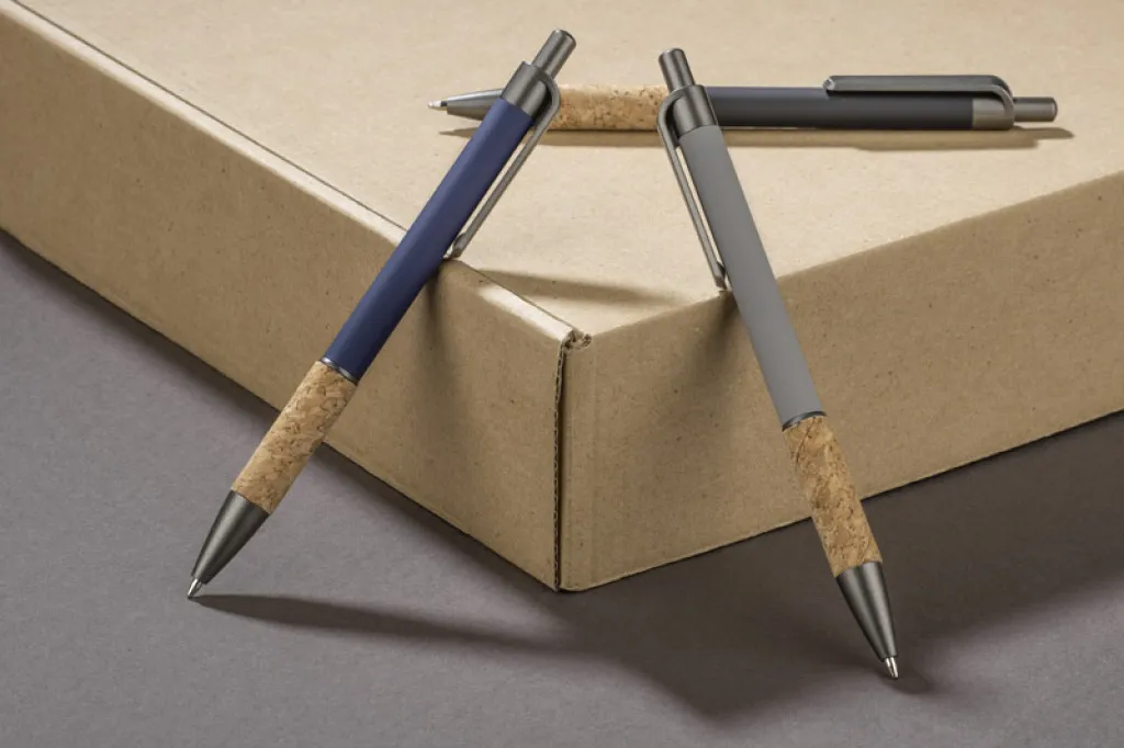 The KUBOD pen has a classic, simple shape. Made of aluminum with a nice in touch rubber coating. The handle finished with a natural cork guarantees comfortable grip. Graphite-colored finishes are made of plastic. Automatic pen. Blue X20 refill.