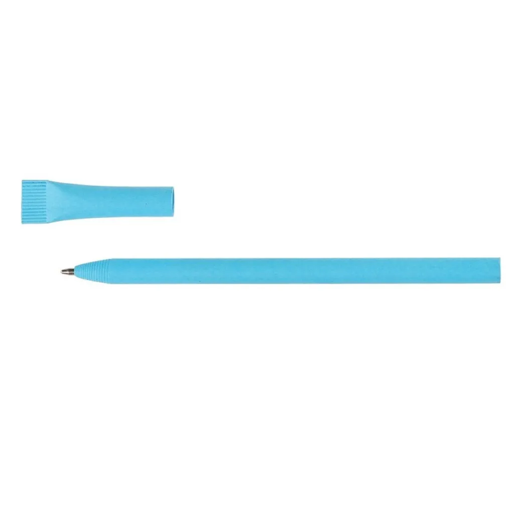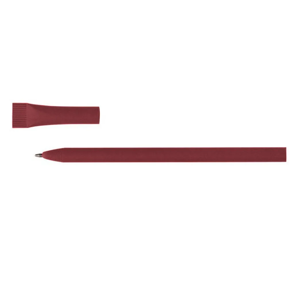 Ball pen made of rolled paper, matching colour cap, cut ending