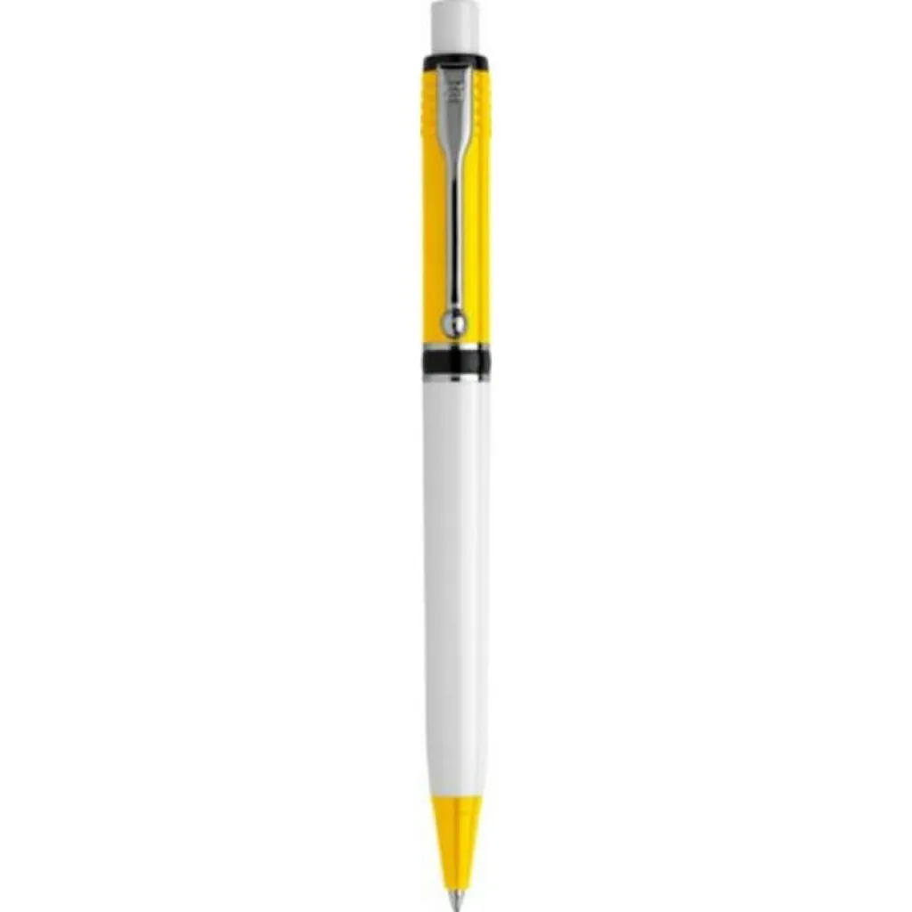 Ball pen Stilolinea Norina, a white barrel, colored accents, metal clip, writes in blue, product made from ABS, plastic, nickel, metal