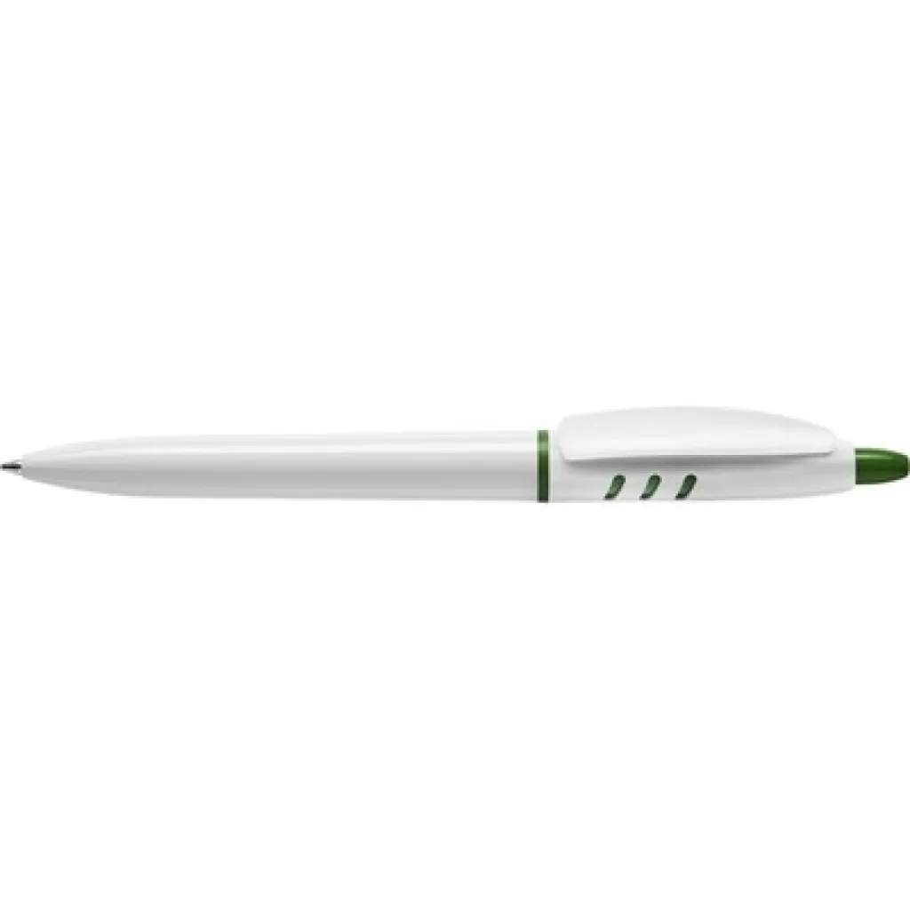 Ball pen Stilolinea S30, a white barrel, colored accents, writes in blue, provided with German Dokumental Ink, product made from ABS, plastic, nickel, metal