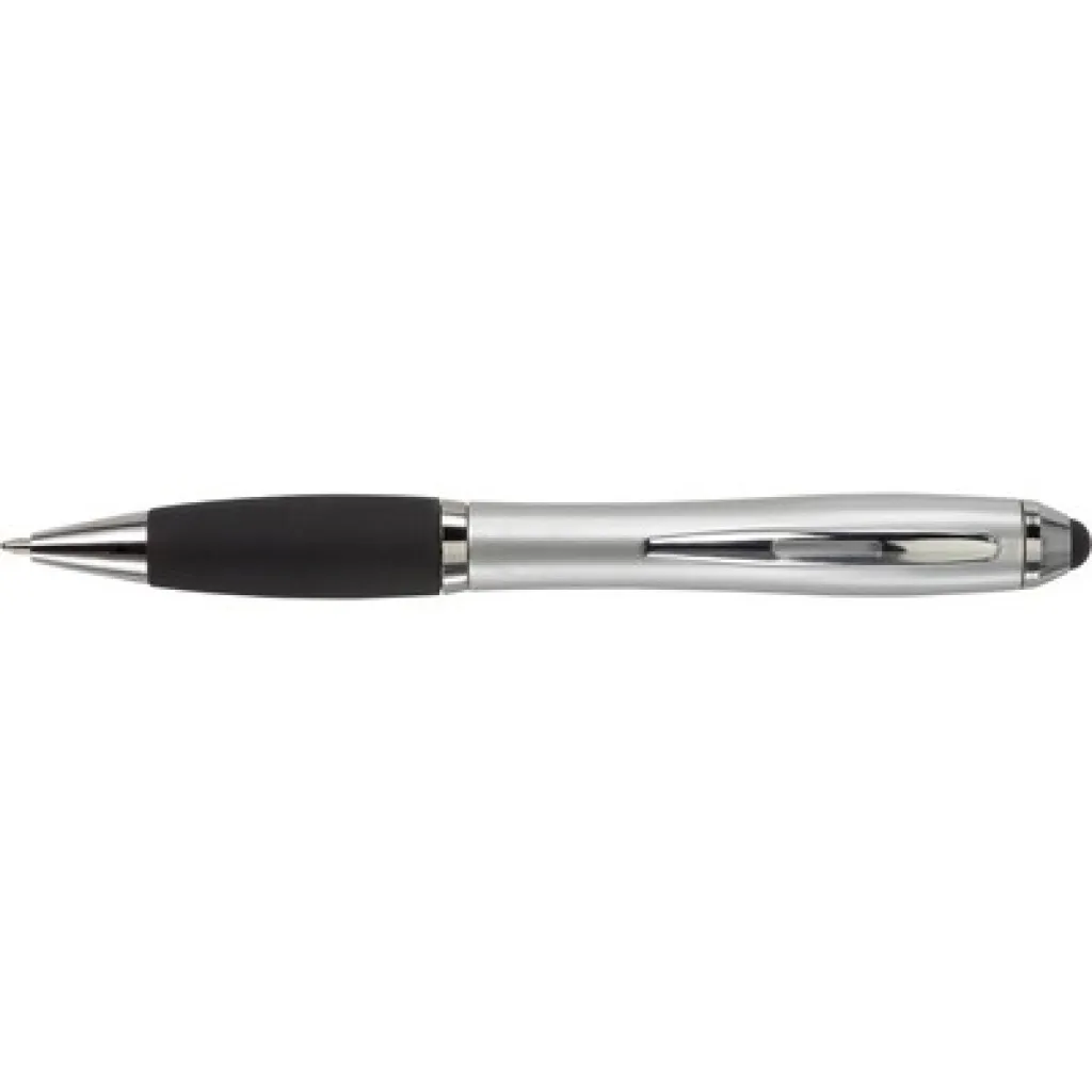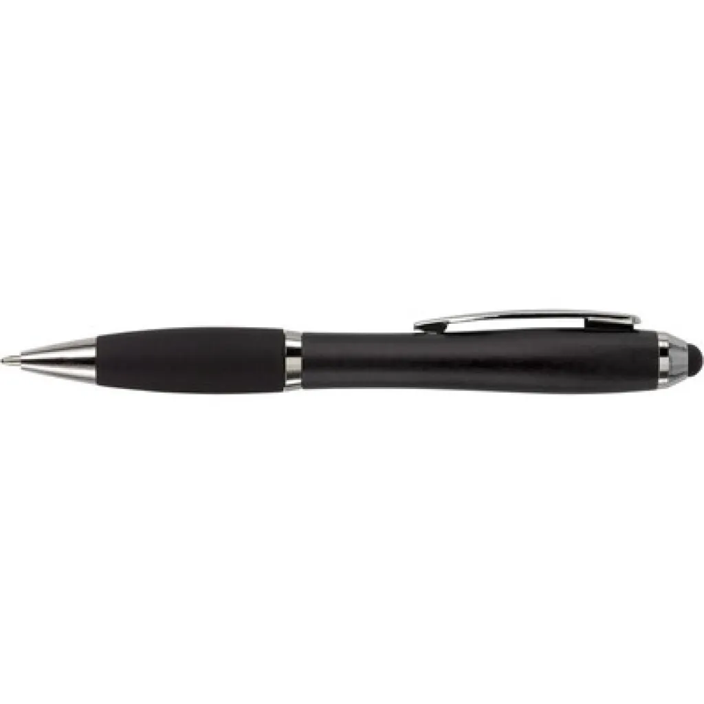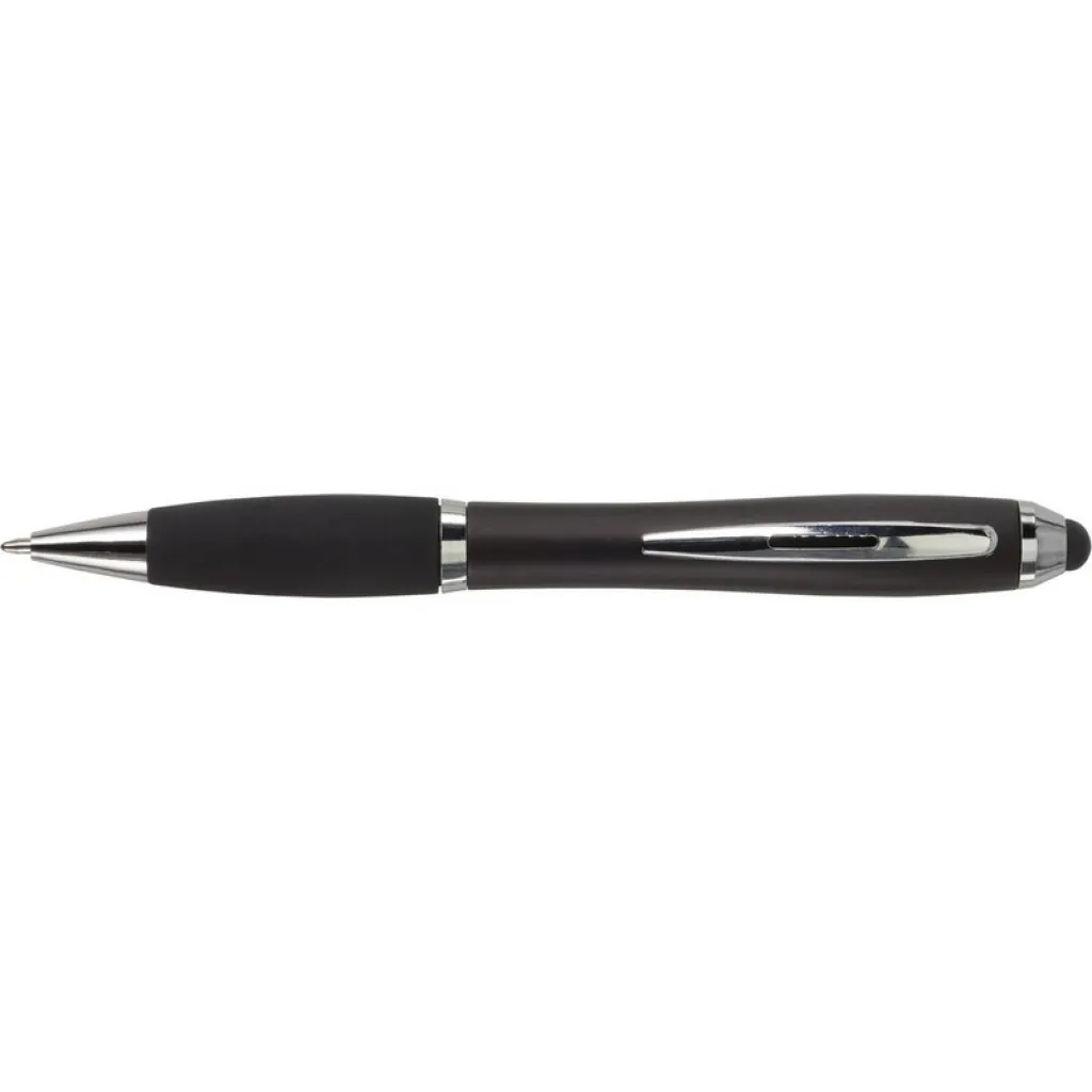 Ball pen, touch pen with rubber grip and coloured barrel