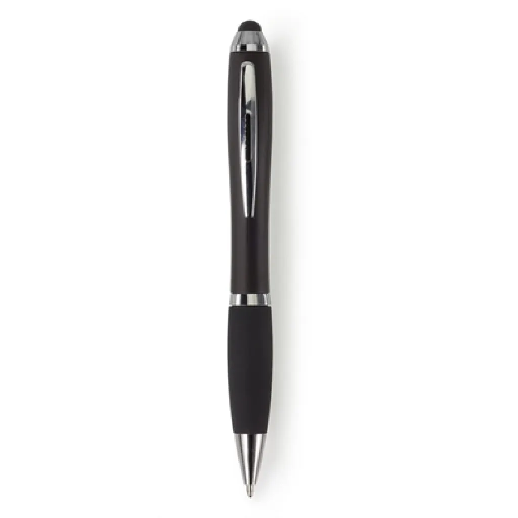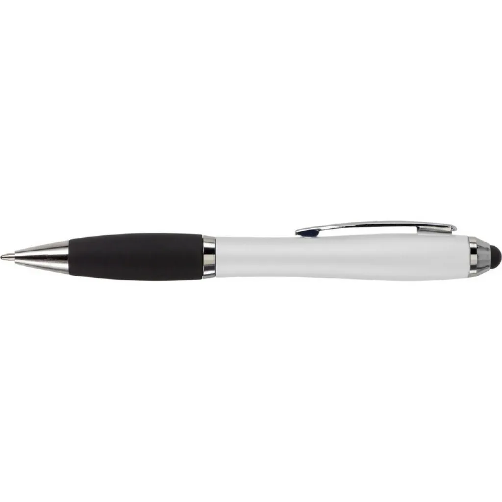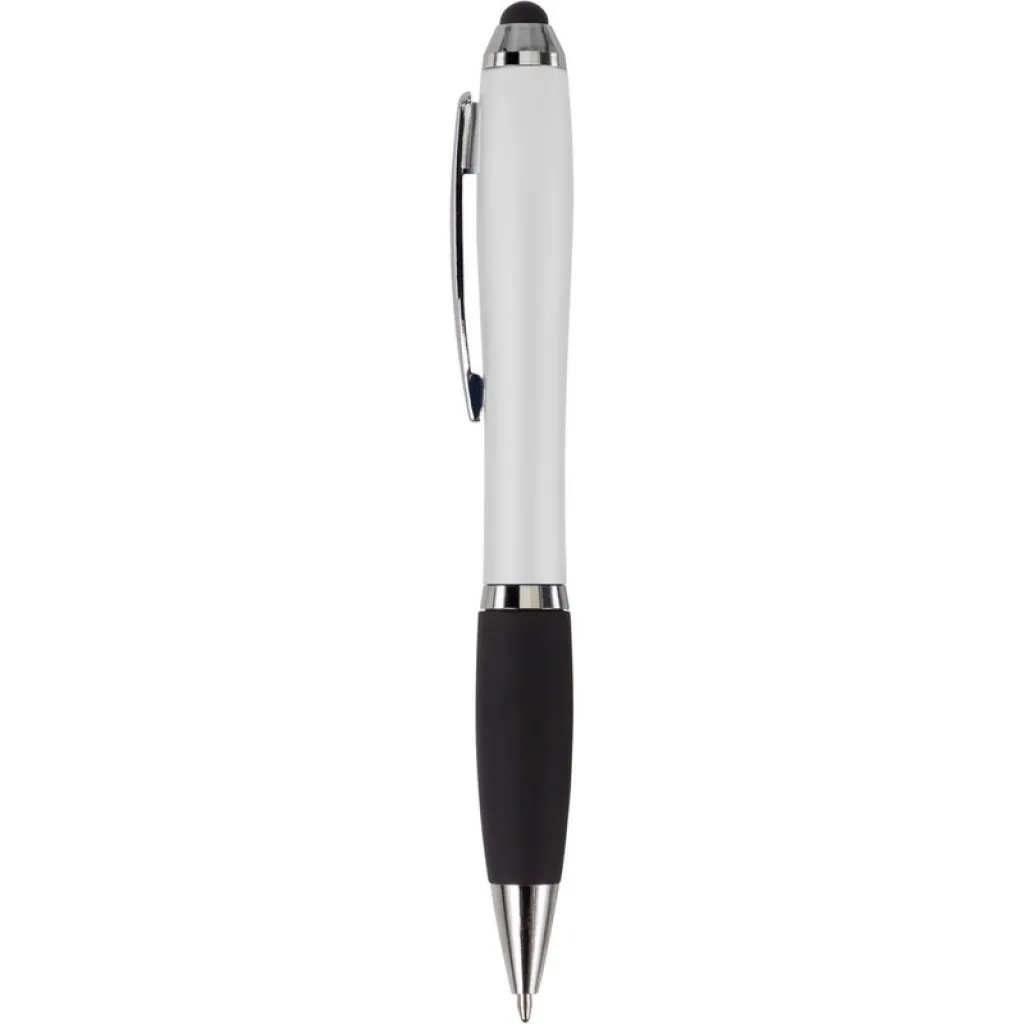 Ball pen, touch pen with rubber grip and coloured barrel