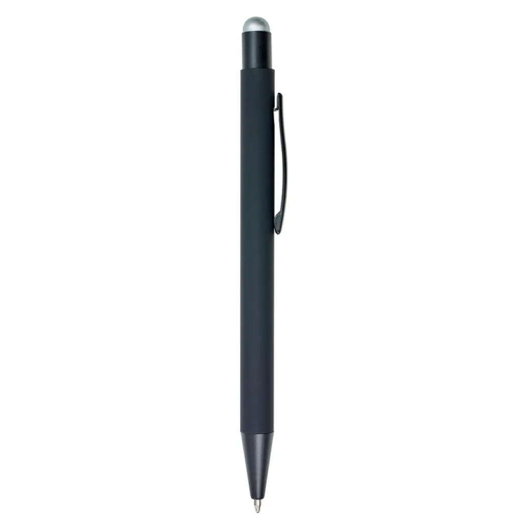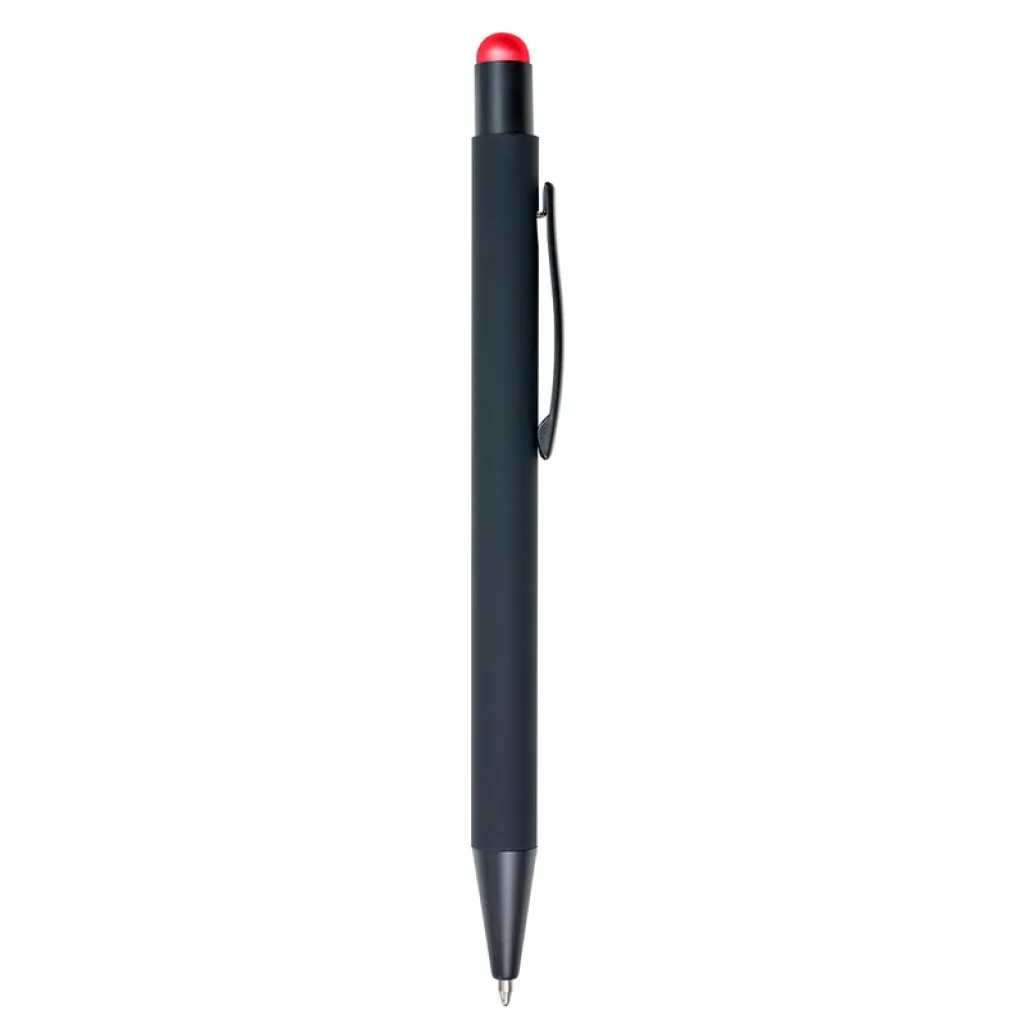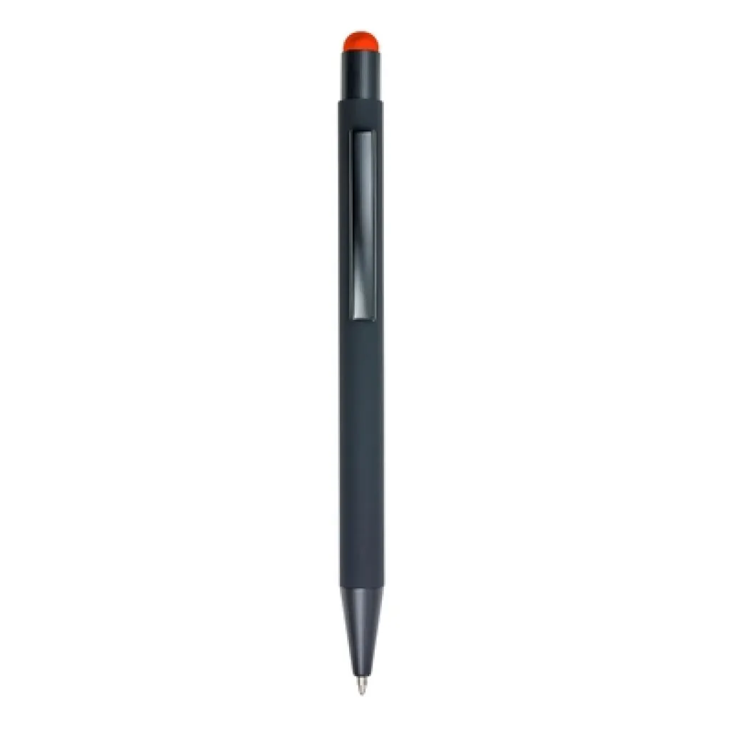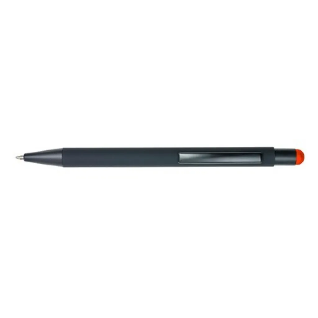 Ball pen, touch pen with rubber finishing, engraving shows the surface coloured as rubber tip