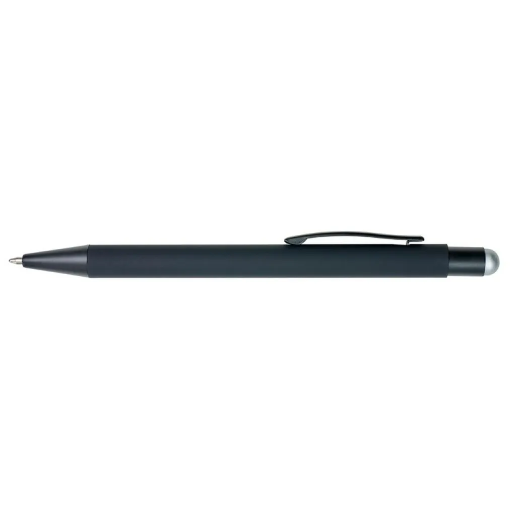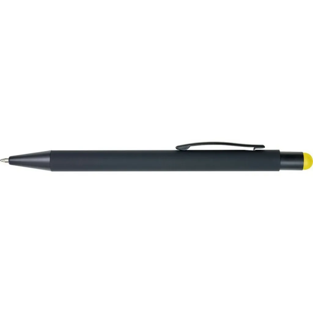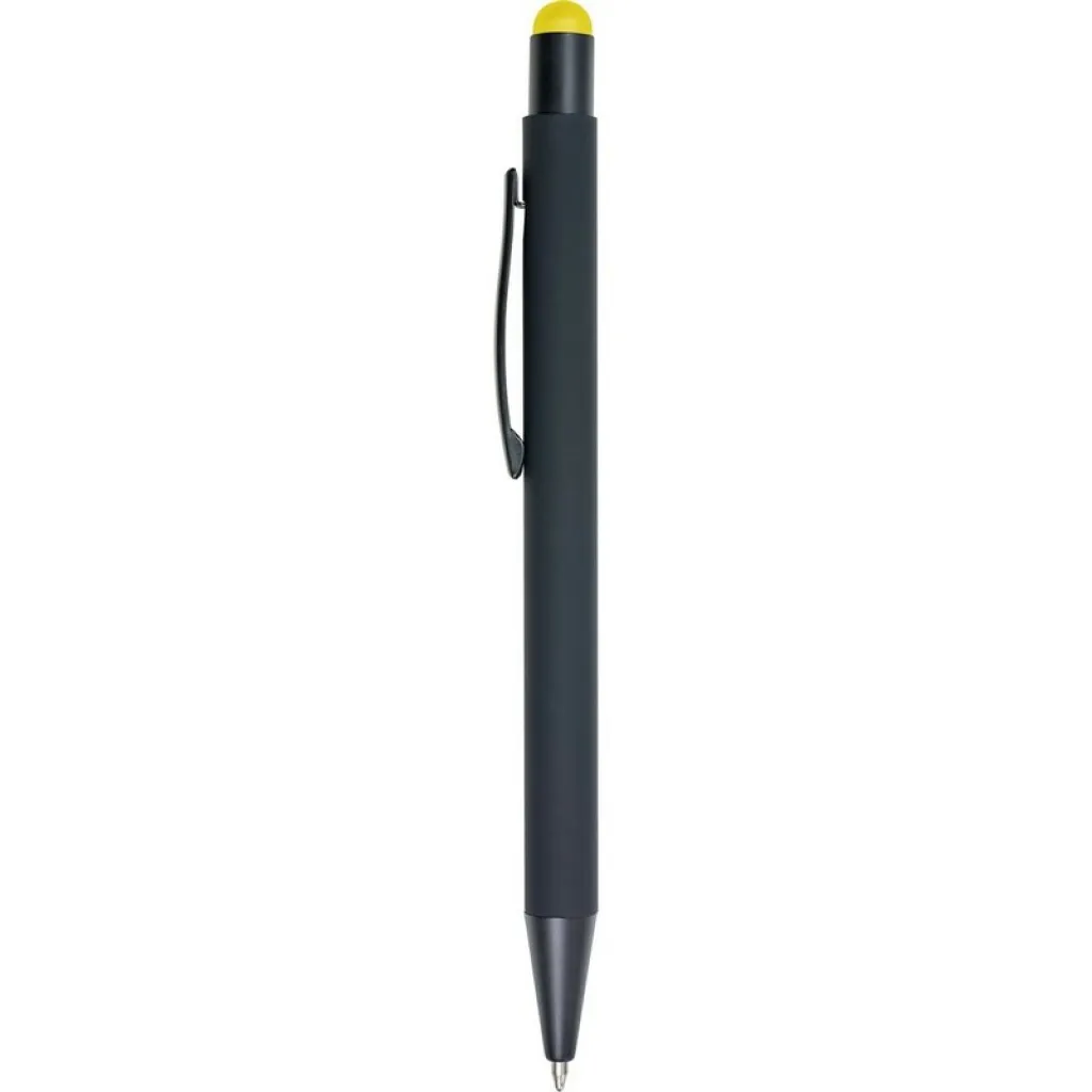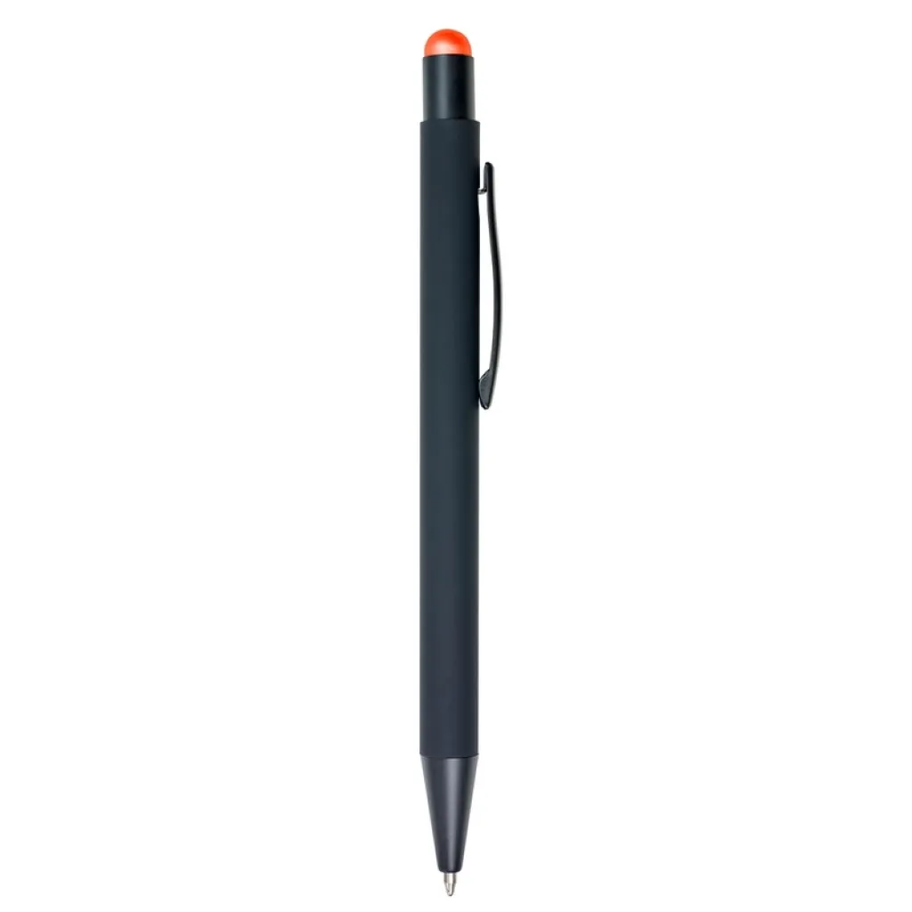 Ball pen, touch pen with rubber finishing, engraving shows the surface coloured as rubber tip