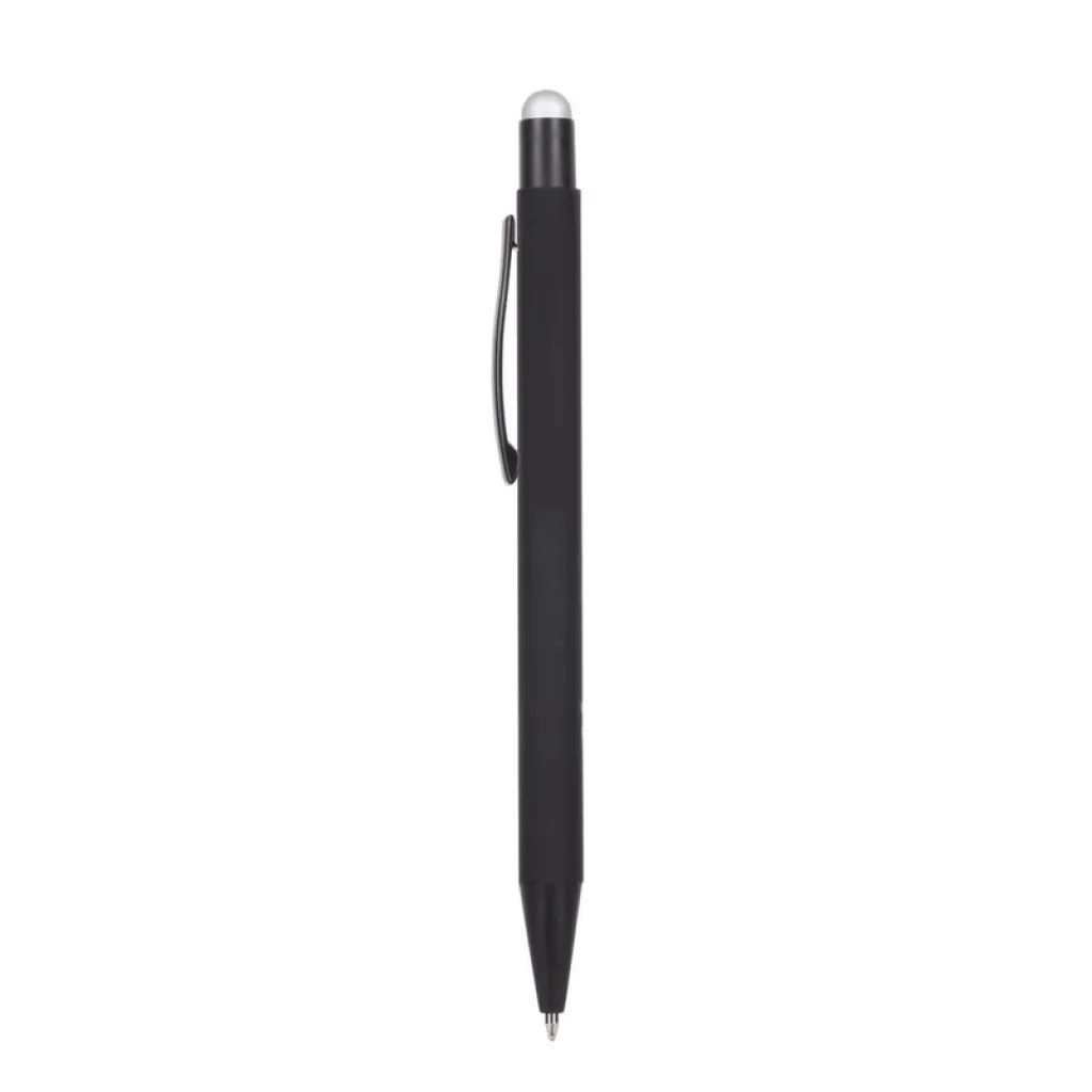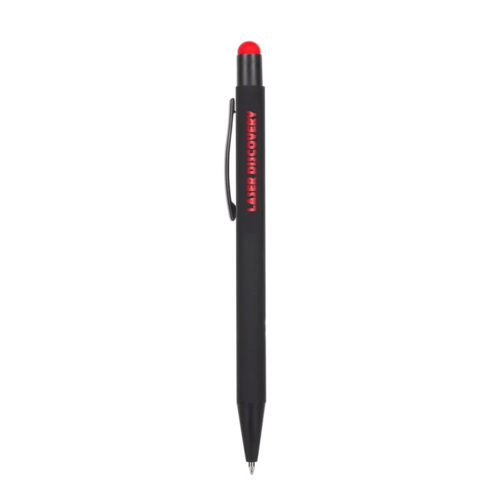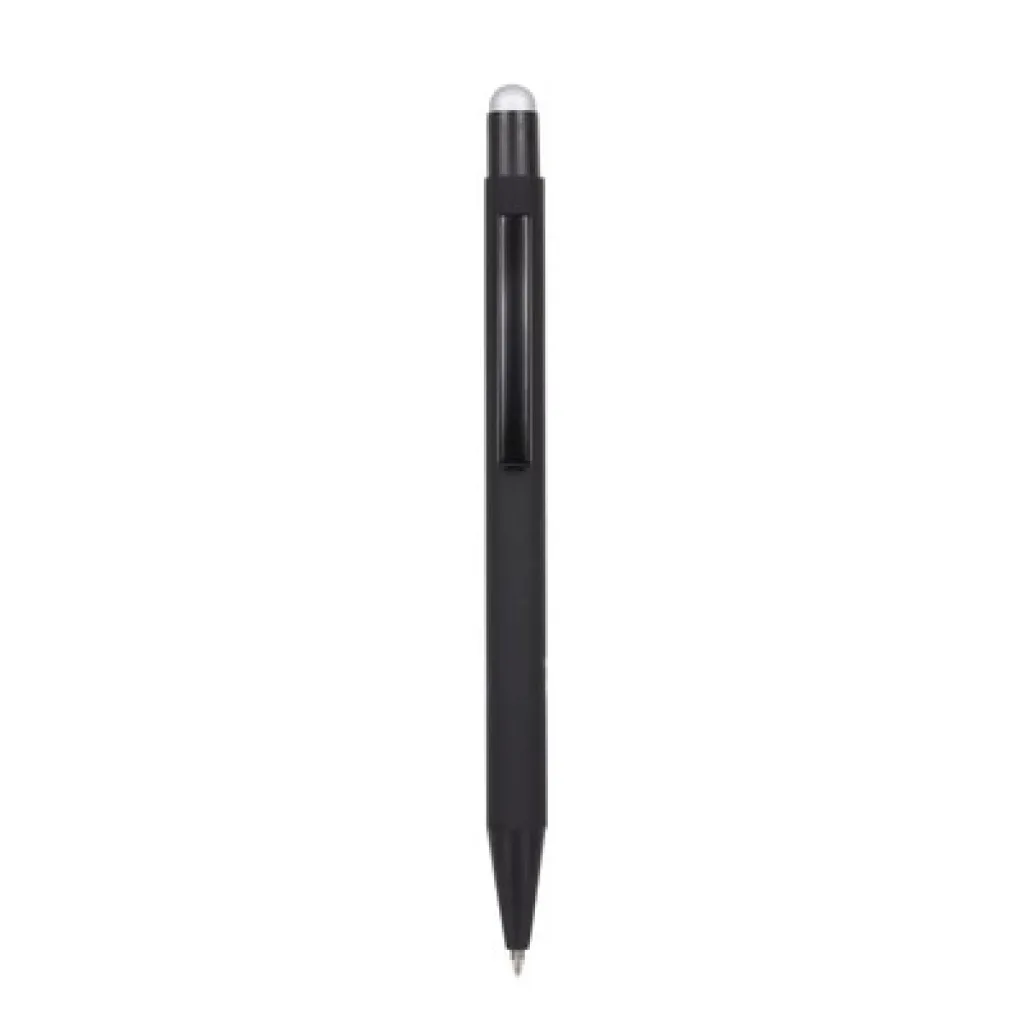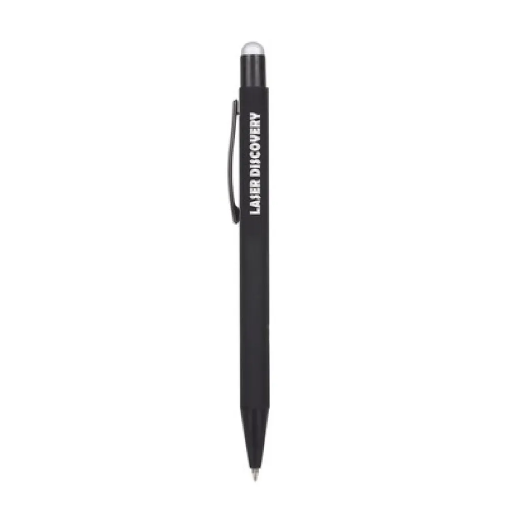 Ball pen, touch pen, black rubber barrel, after engraving shiny surface colour matches colour of rubber tip