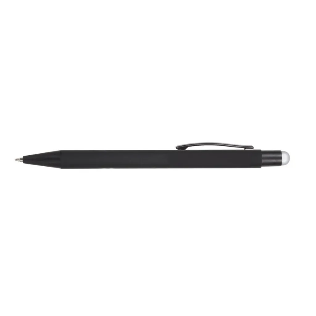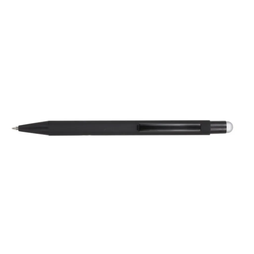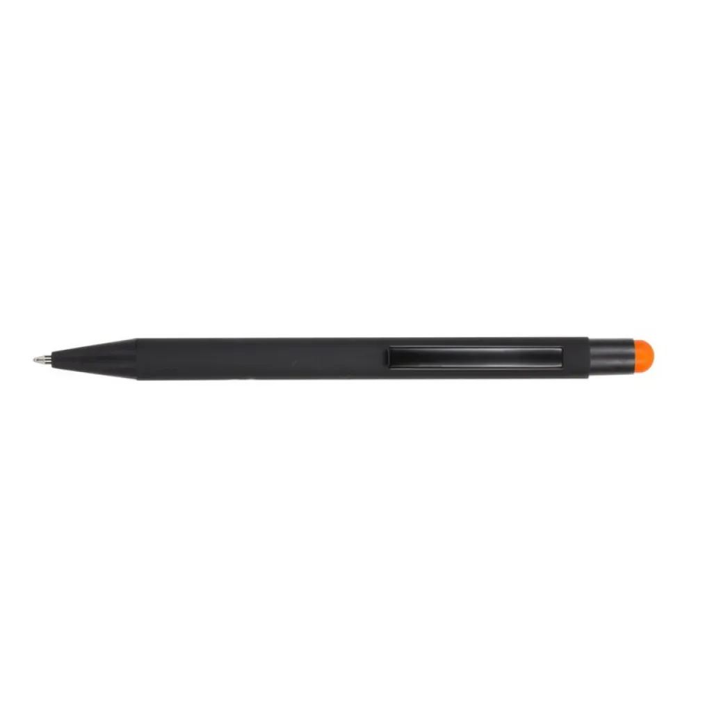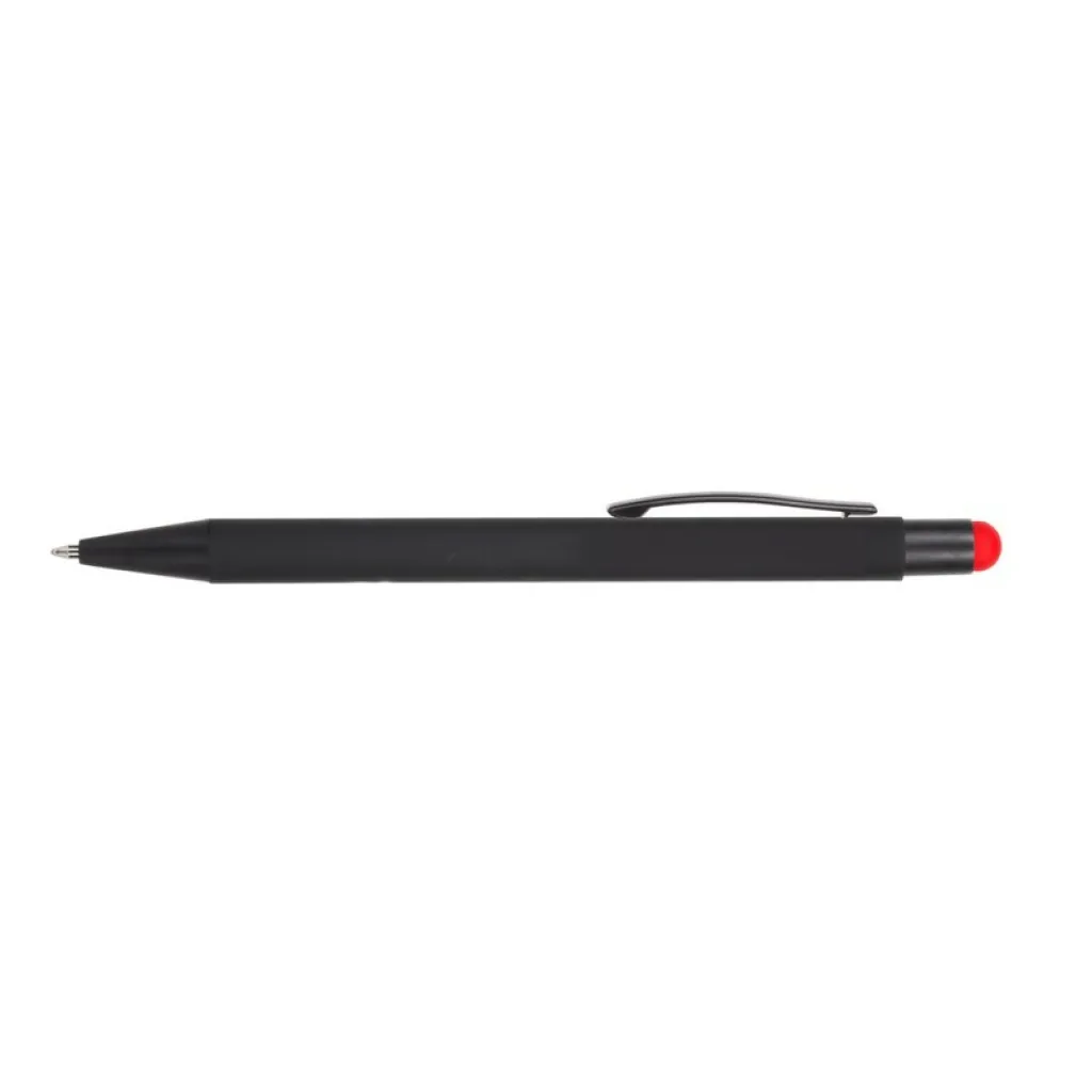 Ball pen, touch pen, black rubber barrel, after engraving shiny surface colour matches colour of rubber tip