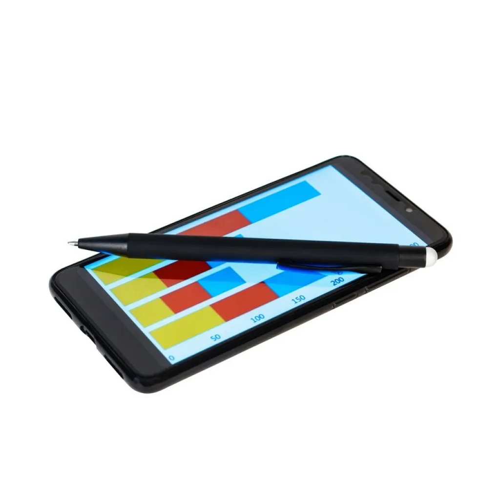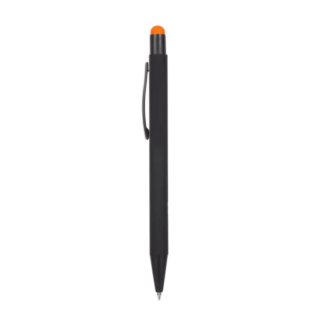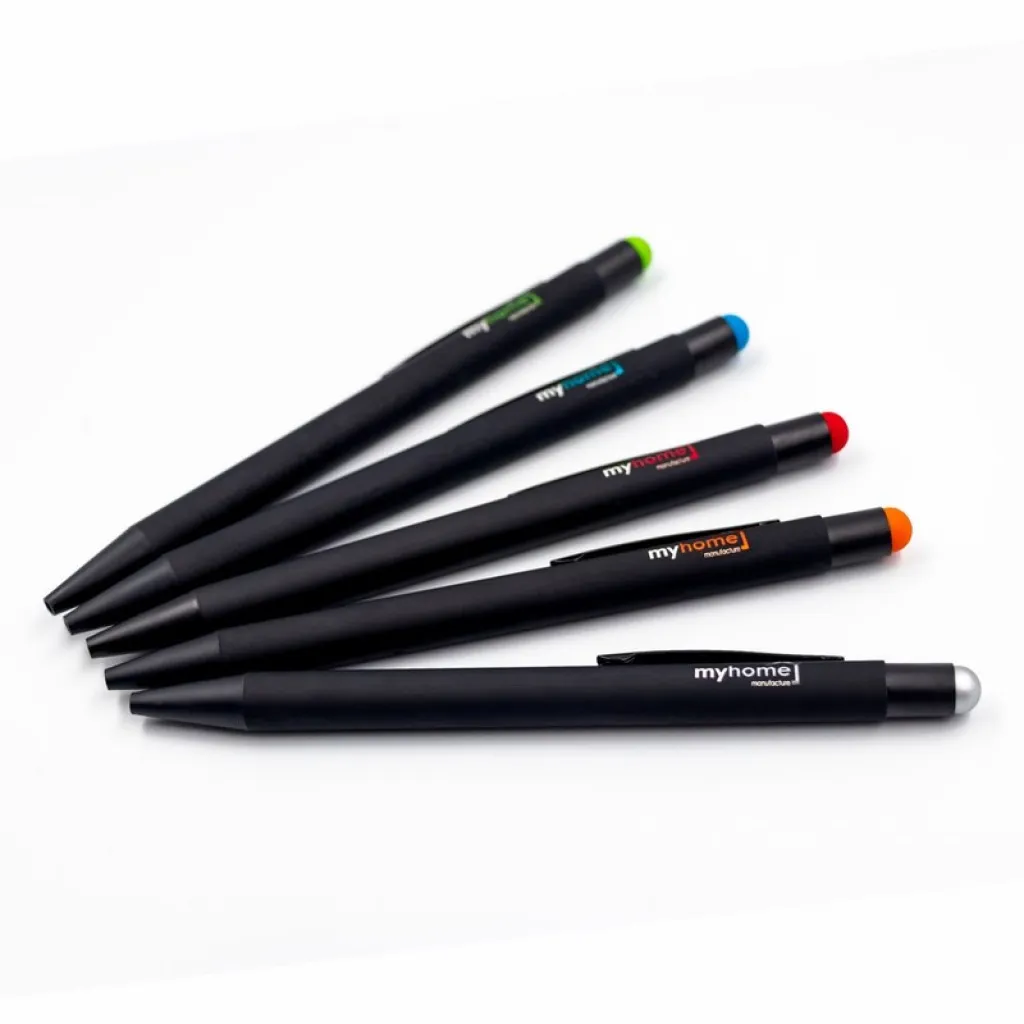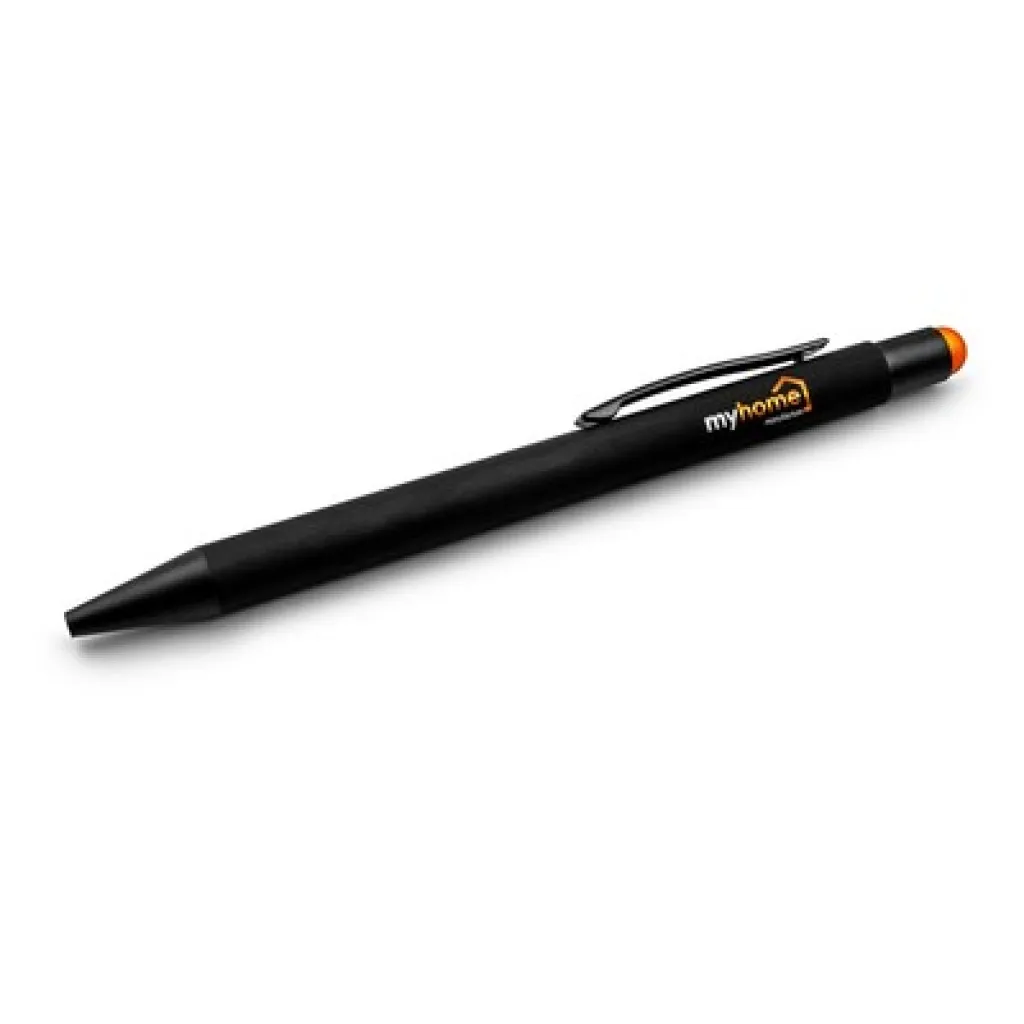 Ball pen, touch pen, black rubber barrel, after engraving shiny surface colour matches colour of rubber tip