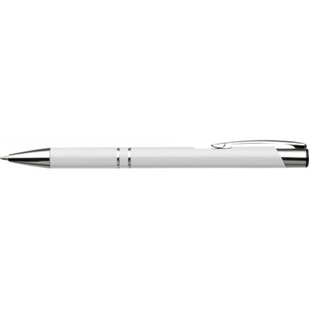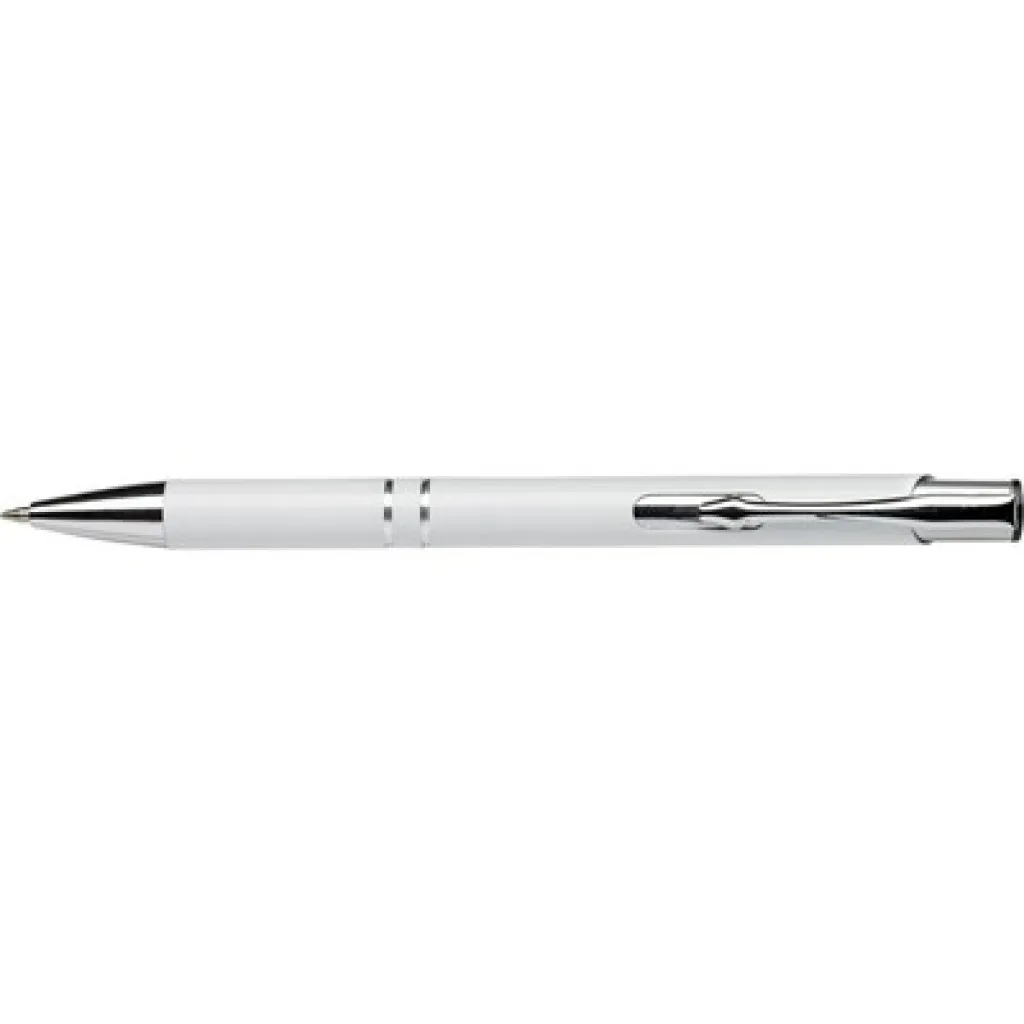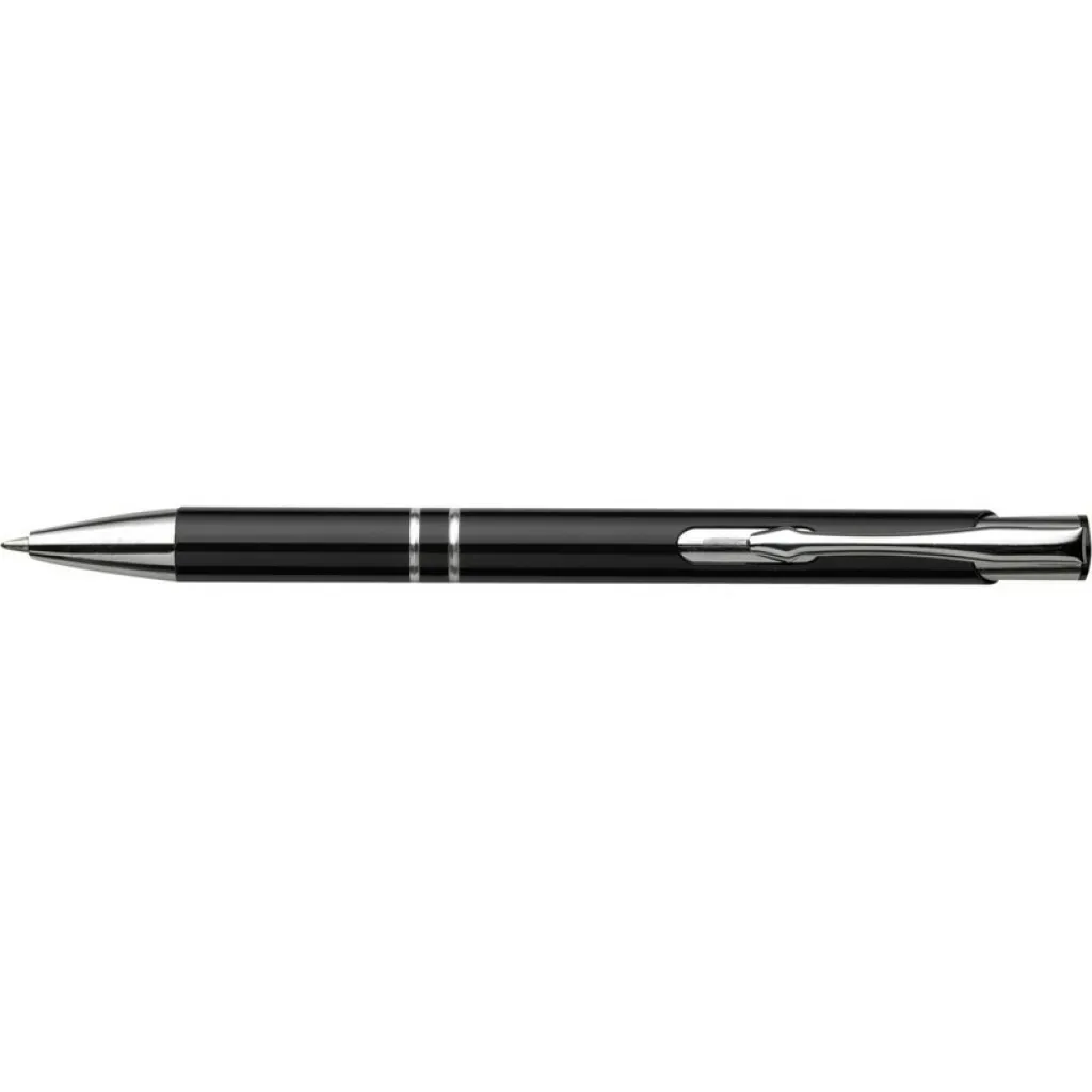 Ball pen with arrow shaped metal clip