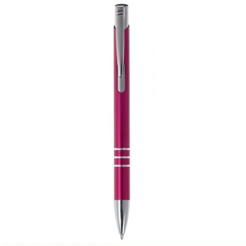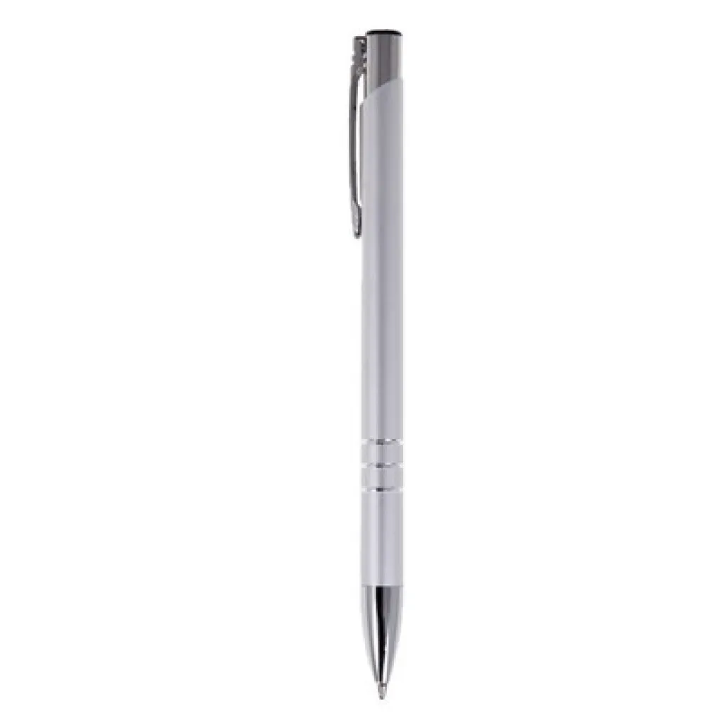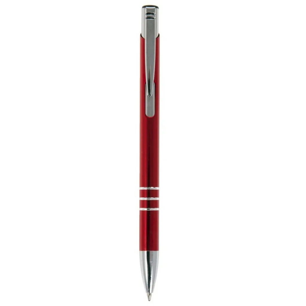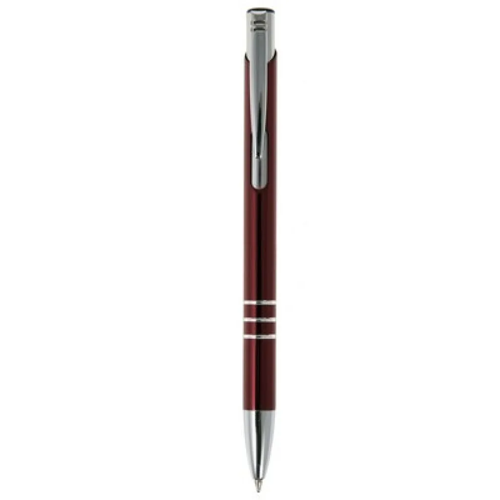 Ball pen with coloured barrel and silver trim parts