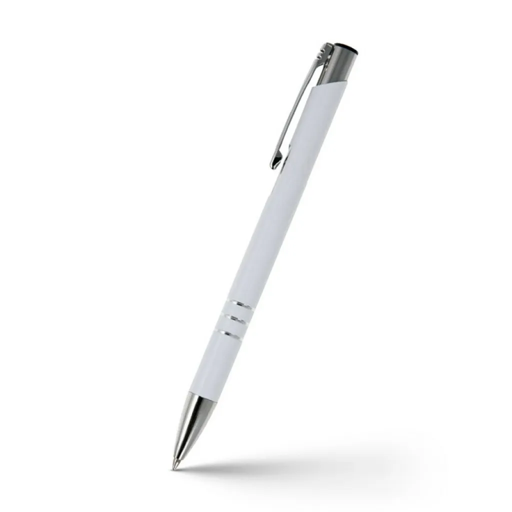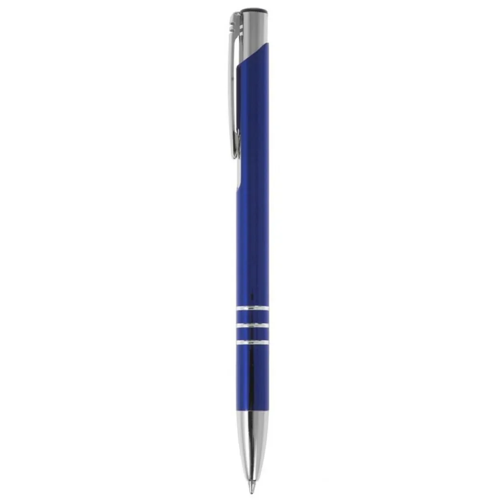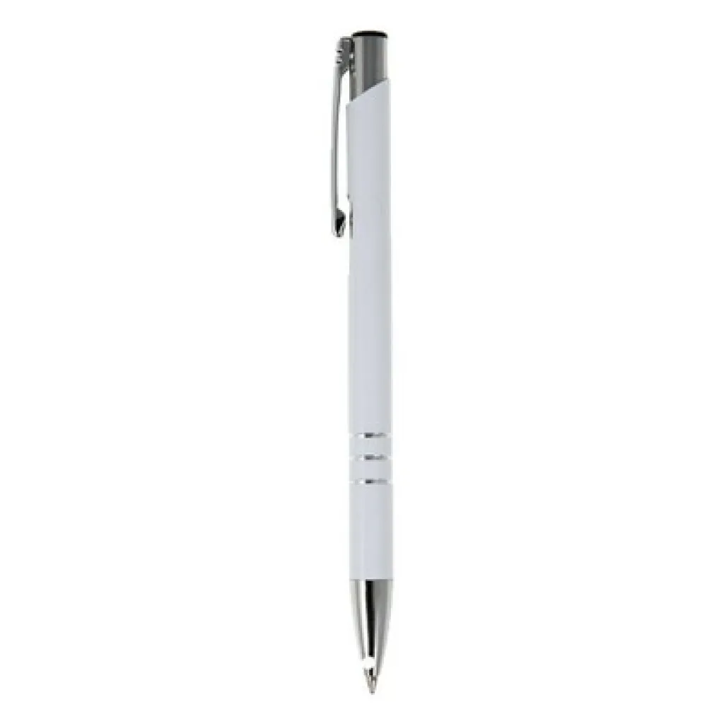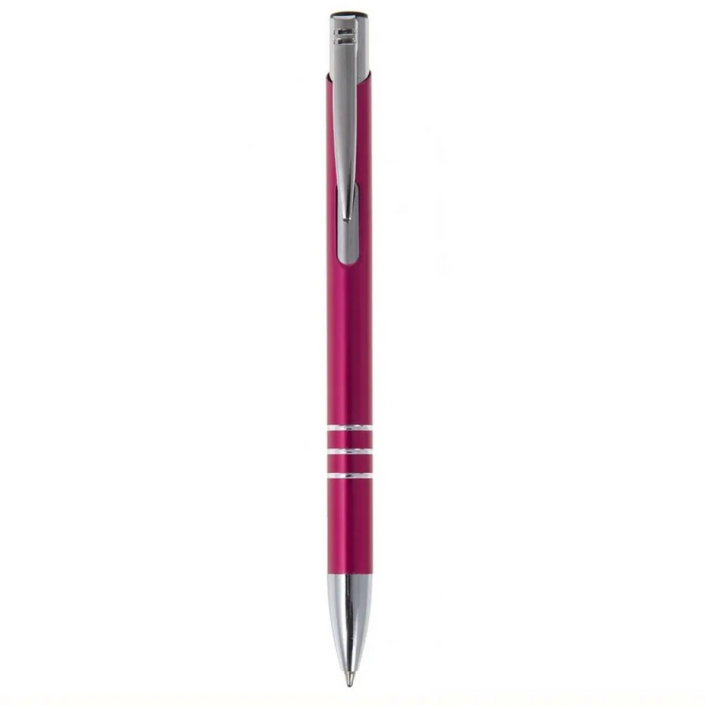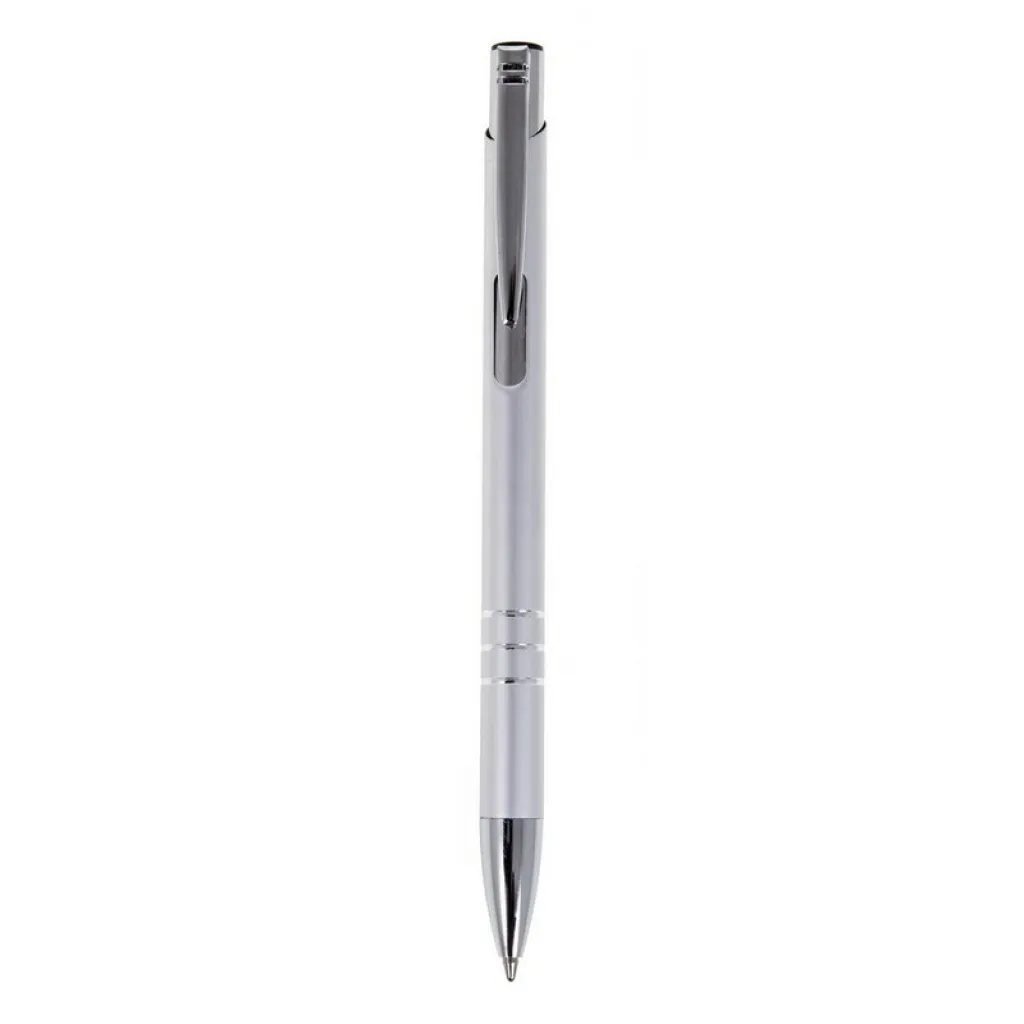 Ball pen with coloured barrel and silver trim parts