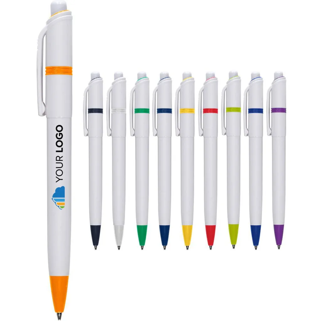 Stilolinea plastic ballpen with a white barrel and colored accents. Blue ink. Provided with German Dokumental Ink.