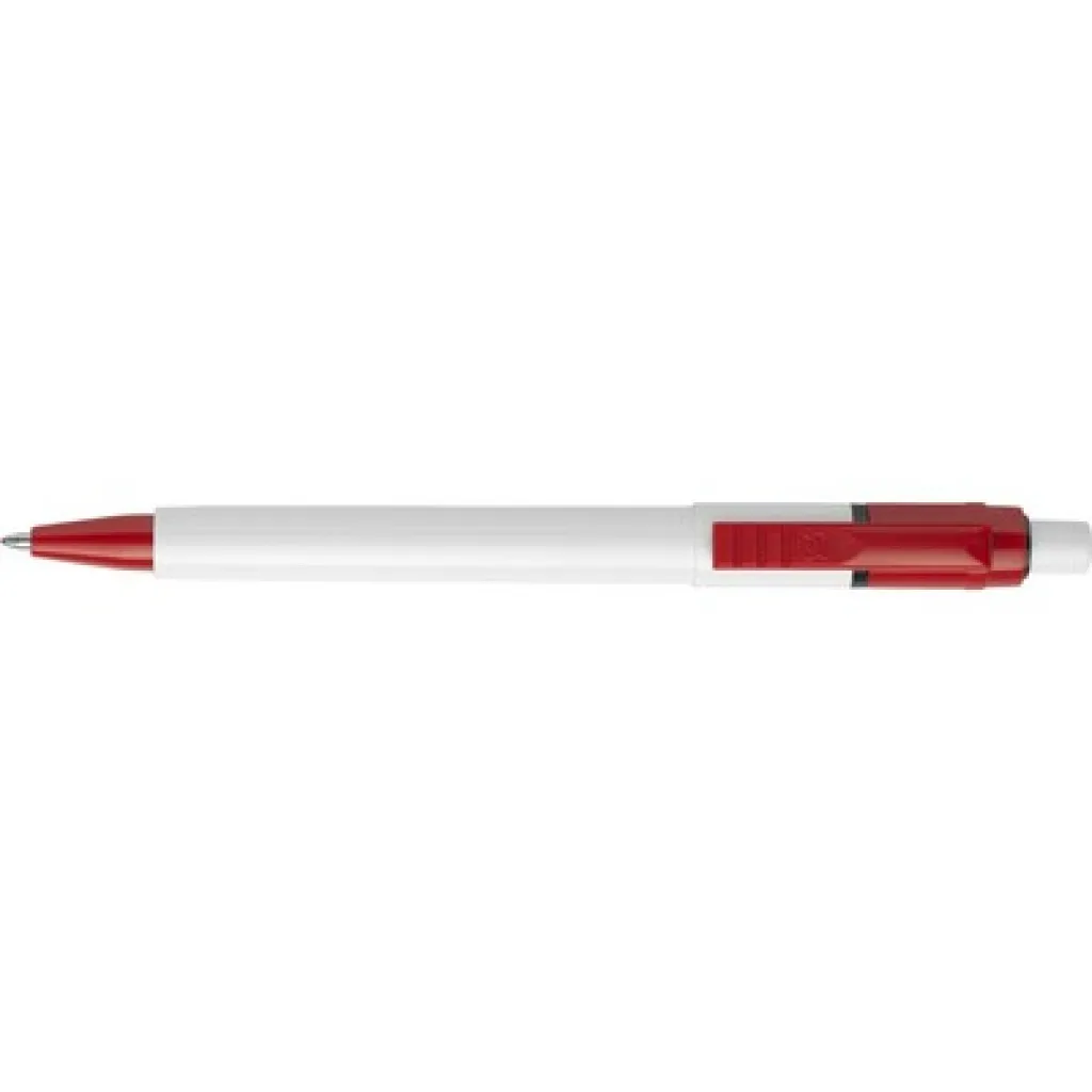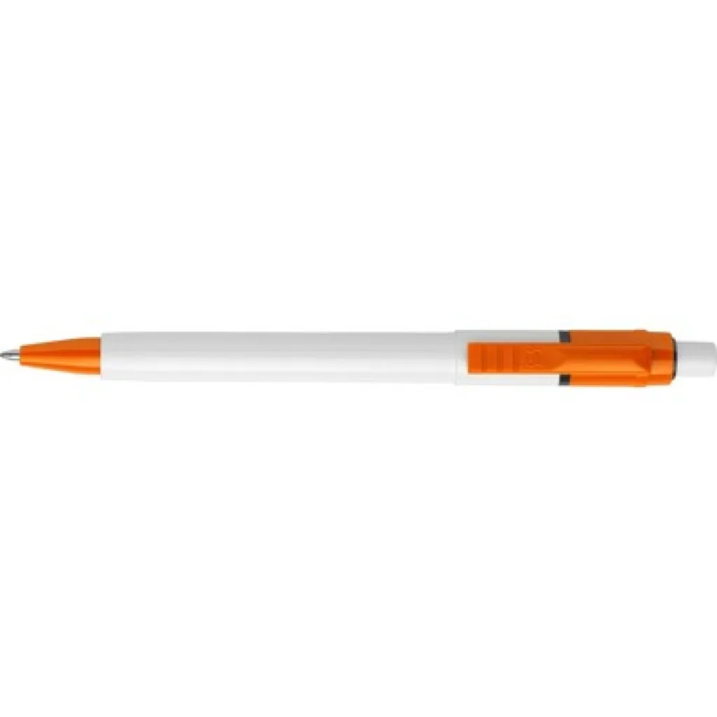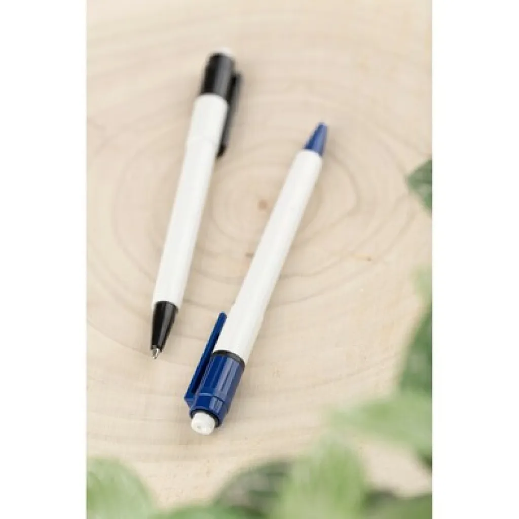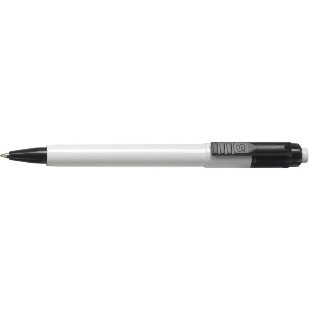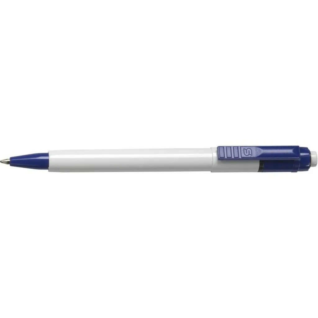 Ballpoint Stilolinea Baron with jumbo refill, a white barrel, colored clip, writes in blue, provided with German Dokumental Ink, product made from ABS, plastic, metal