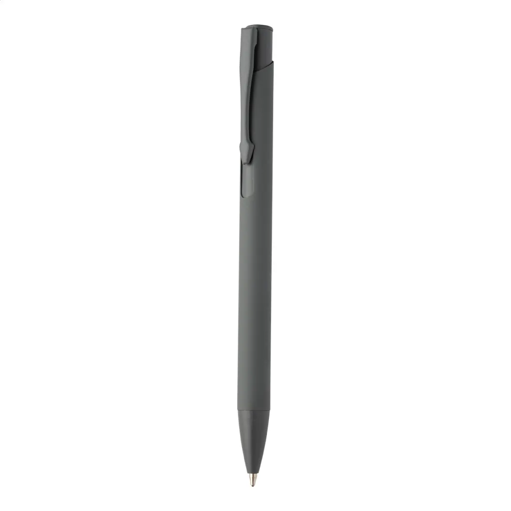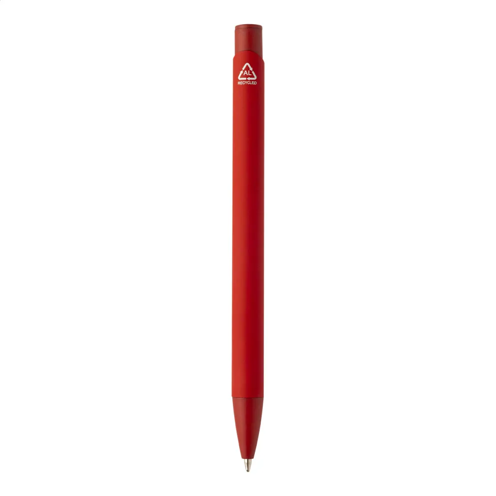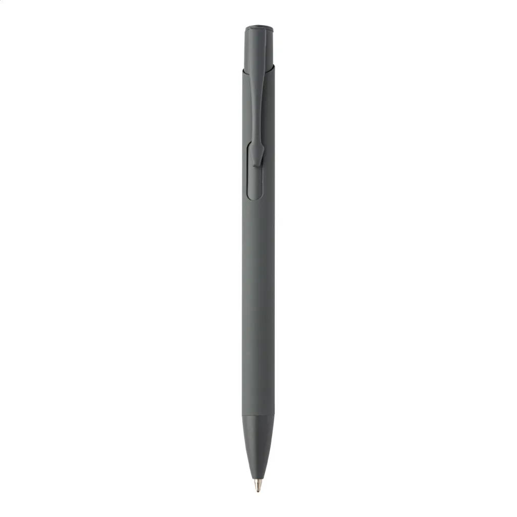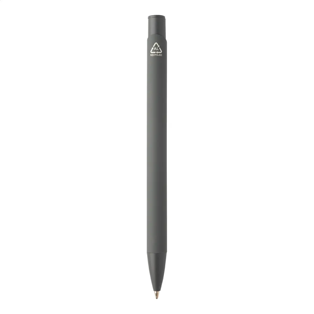 Recycled aluminium ballpoint pen with rubberized body and matching colour details. With blue refill.