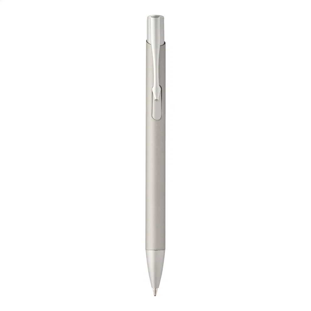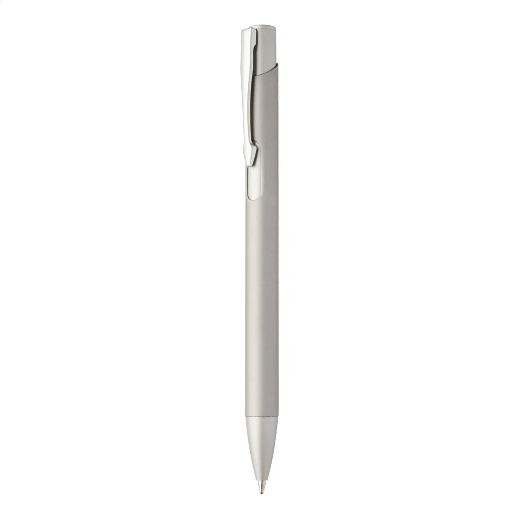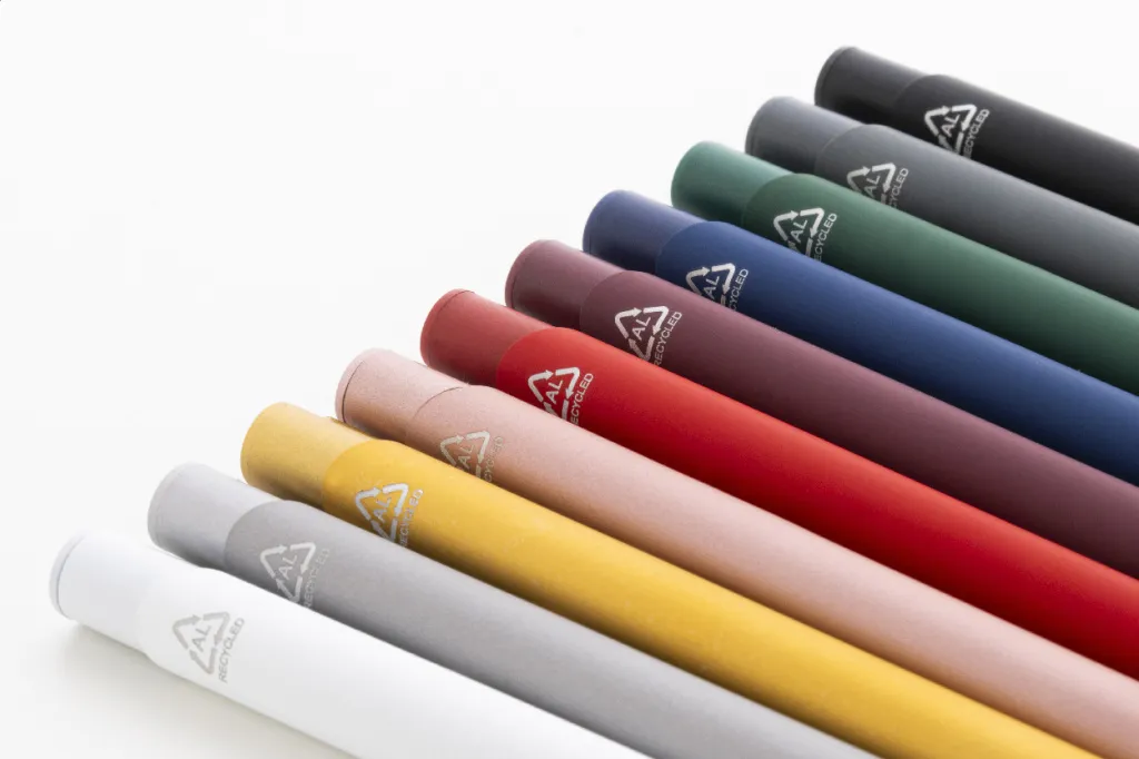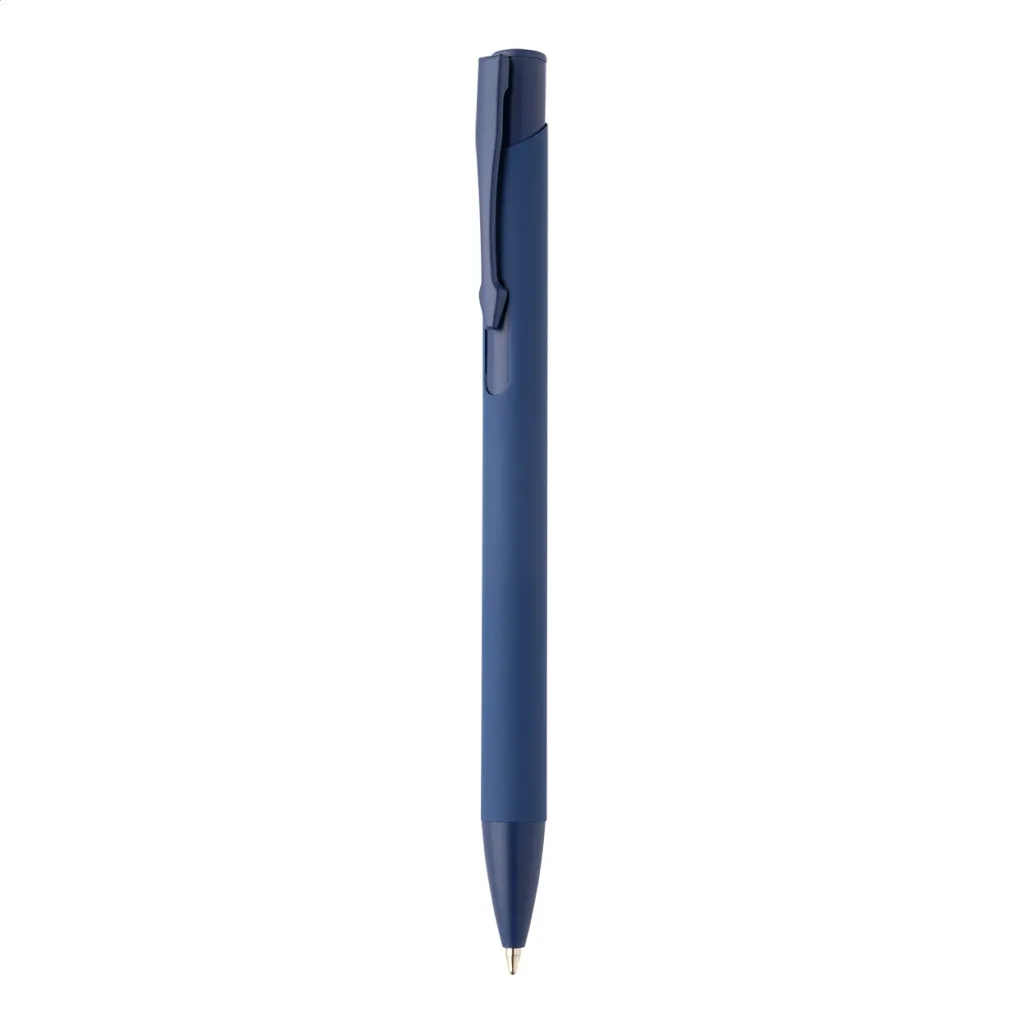 Recycled aluminium ballpoint pen with rubberized body and matching colour details. With blue refill.
