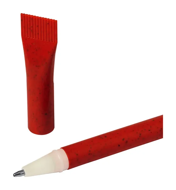 Wheat straw plastic ballpoint pen with cap and blue refill.