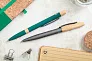 Bamboo and recycled aluminium ballpoint pen with rubberized finish and gunmetal clip. With blue refill.