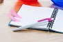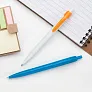 Plastic ballpoint pen with white barrel and coloured clip. With blue refill.