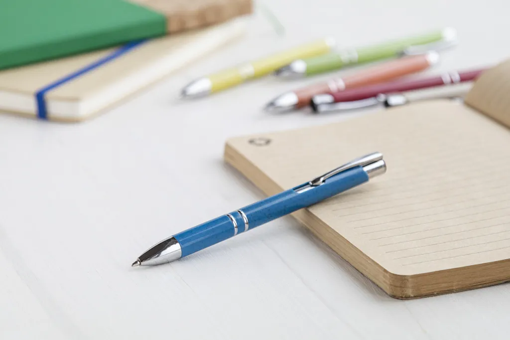 Ecological wheat straw plastic ballpoint pen with metal parts. With blue refill.