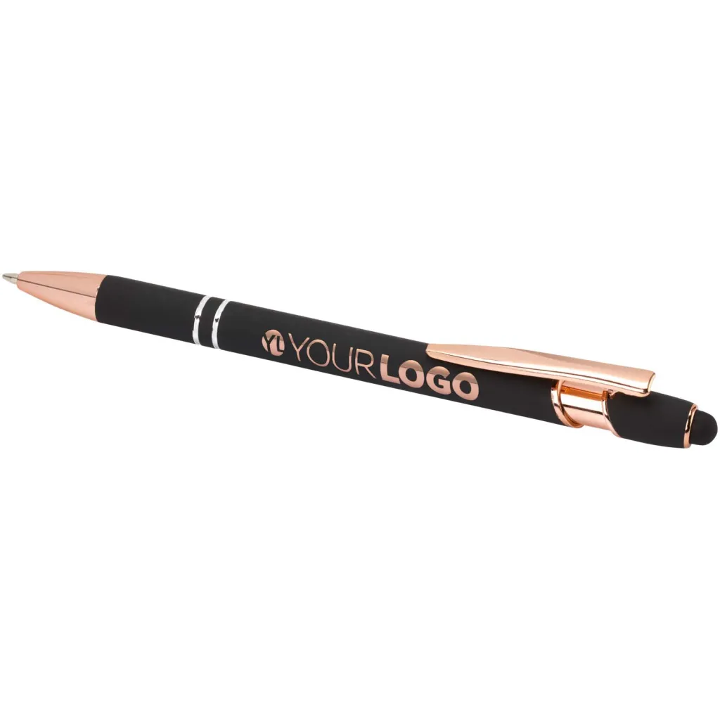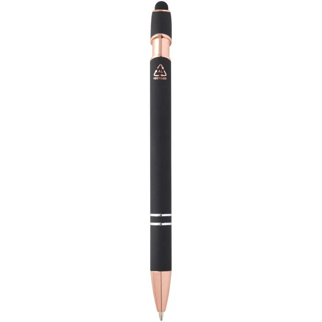 The Nanna ballpoint pen with rose gold finish has a barrel made of recycled aluminium with a touch stylus made of silicone. Recycled aluminium reduces the amount of waste in landfills and helps to conserve natural resources aiming to reduce greenhouse emissions. Ink colour: Black. Writing length: 800 metres. Nib size: 1.0 mm.