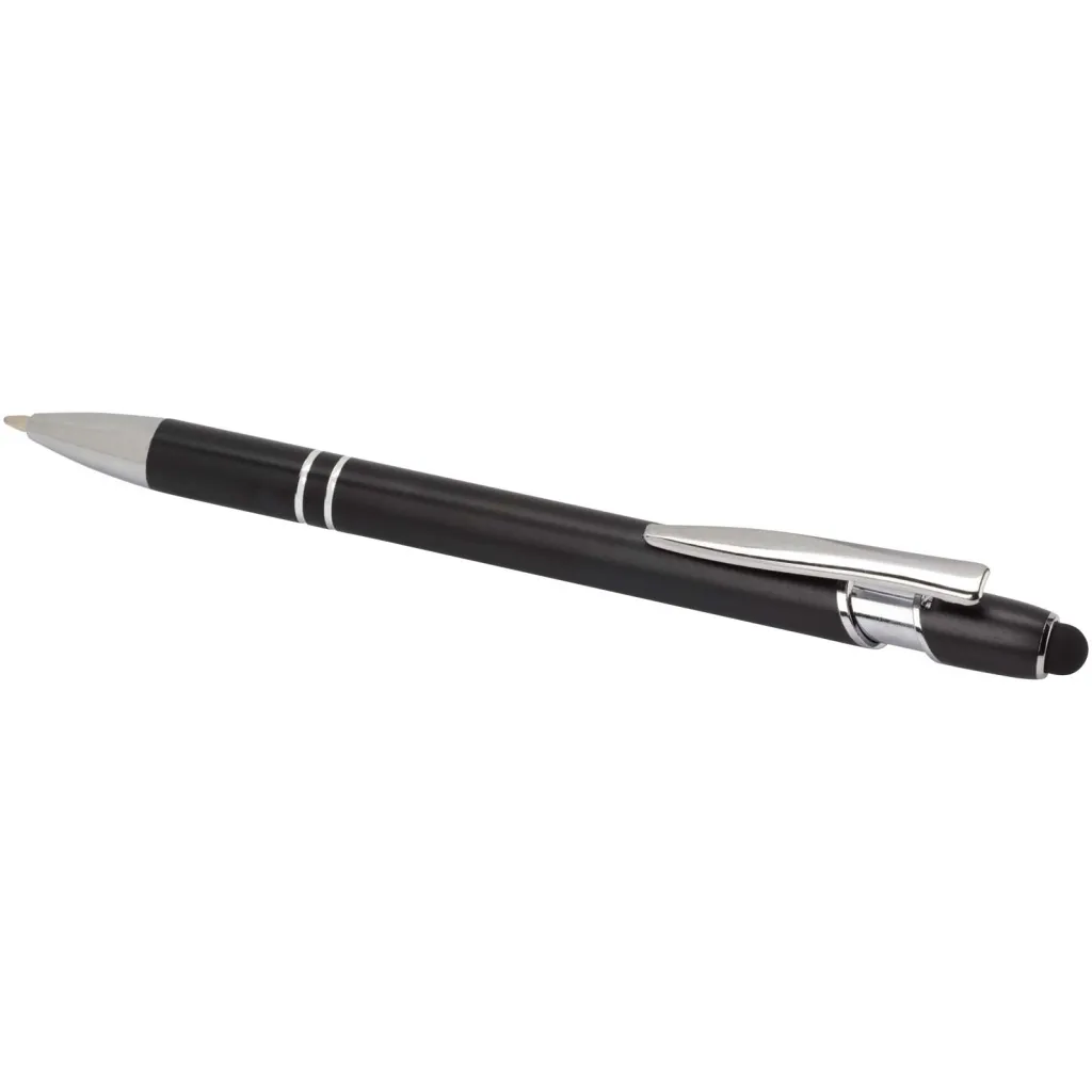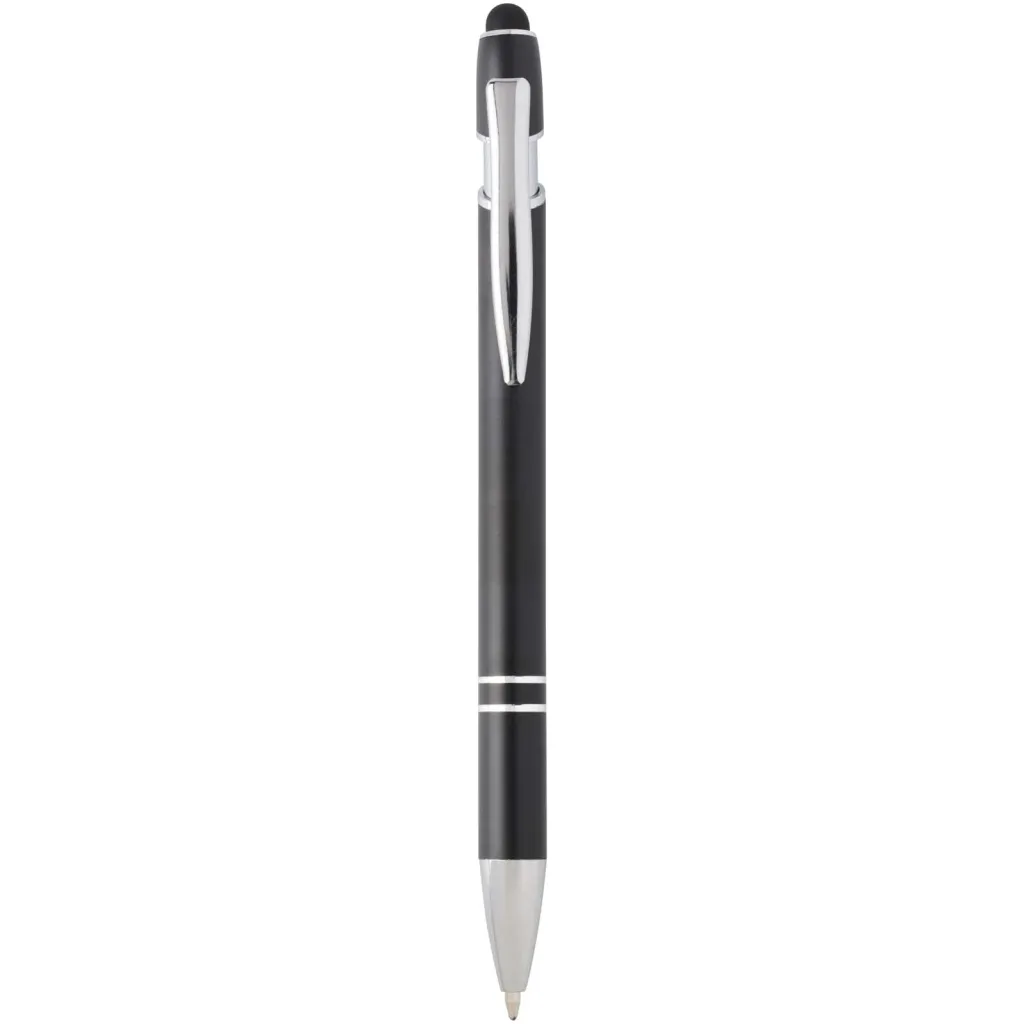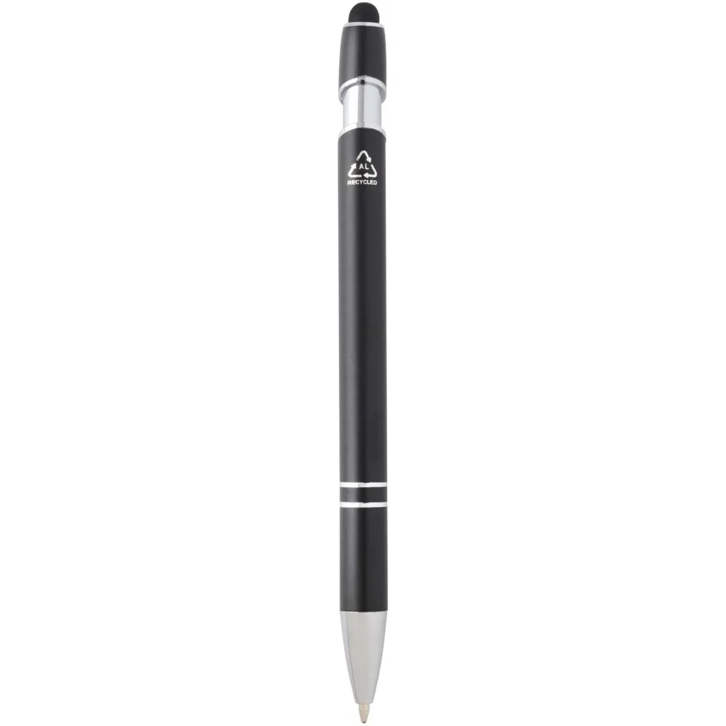 The Kish ballpoint pen with silver finish has a barrel made of recycled aluminium with a touch stylus made of silicone. Recycled aluminium reduces the amount of waste in landfills and helps to conserve natural resources aiming to reduce greenhouse emissions. Ink colour: Blue. Writing length: 800 metres. Nib size: 1.0 mm.