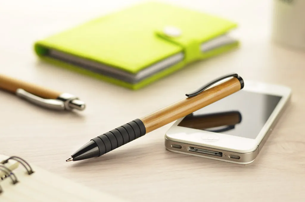 Something different than regular plastic and metal ball pens. This gadget have body made of one piece of solid bamboo. It's accompasnied by elegant, black mechanism parts. Marking can be made on bamboo body.