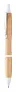 Bamboo ballpoint pen with coloured plastic parts and metal clip. With blue refill.
