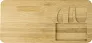 Bamboo cheese board with three utensils, which fit inside cut-outs in the board. Individually packed in brown cardboard box