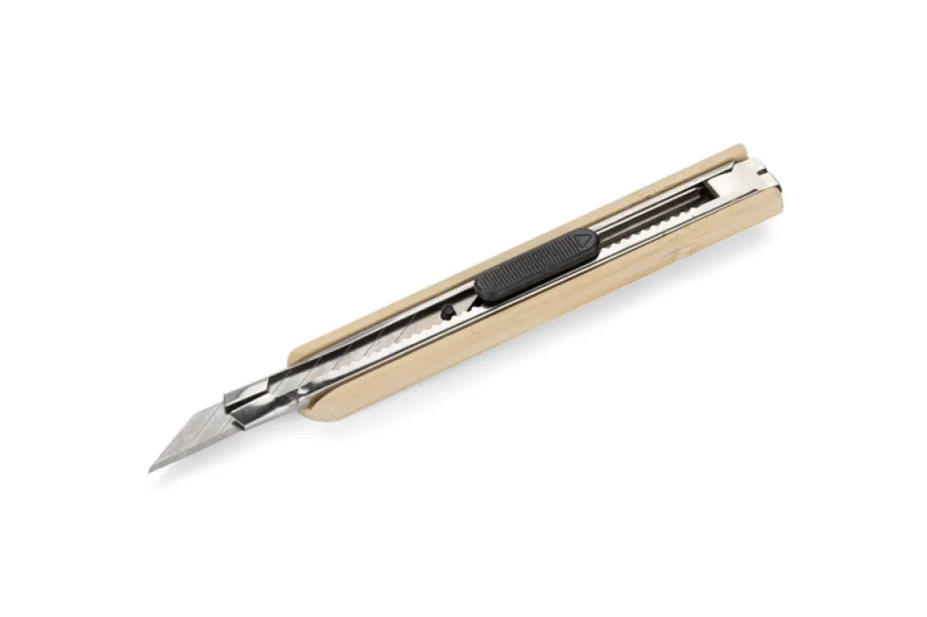 The BAMU technical knife in an elegant bamboo frame is a versatile tool that can be used in many situations. Thanks to its segmented design, the worn-out part of the blade can be easily broken off, ensuring long-lasting use. Personalisation in the form of adding a logo or advertising slogan makes it not only a practical tool, but also an effective advertising medium.