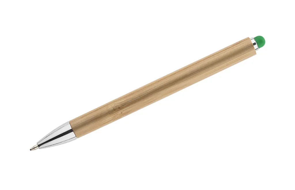 Body of TUSO is made entirely of bamboo. Chrome finishes give add to its elegance. The colorful tip designed to use with touch screens is an interesting decoration. Automatic ballpoint pen. G2 type refill in blue.