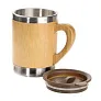 Travel mug 250 ml with handle and bamboo parts, stainless steel inside, plastic lid, thermal insulation scale: 1