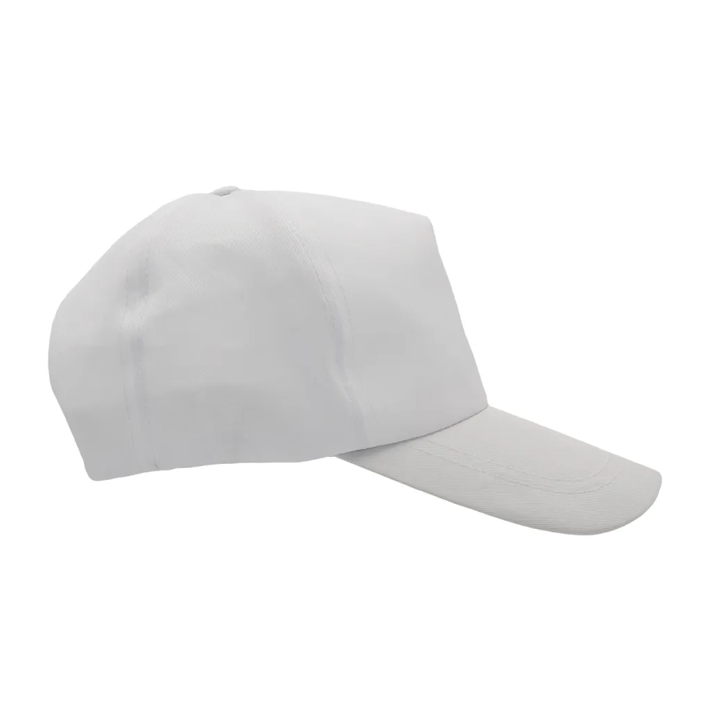 5-panel cap with peak and adjustable fastening (100g/m2). Stiffened front panel. Peak length 85 mm