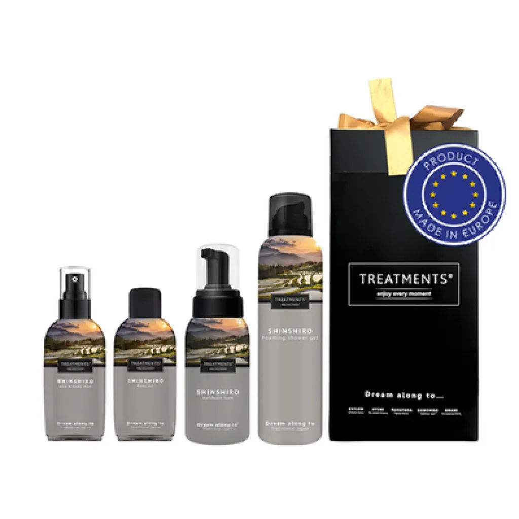 Beauty set Medium TREATMENTS, the set includes: bed & body mist 50 ml, body oil 50 ml, foaming shower gel 200, hand wash foam 250 ml, the cosmetics are packed in an elegant paper box, perfect for everyday care, suitable for men and women alike, available in various fragrance options: 03 – Ceylon, 06 – Mahayana, 11 – Uyuni, 19 – Shinshiro.