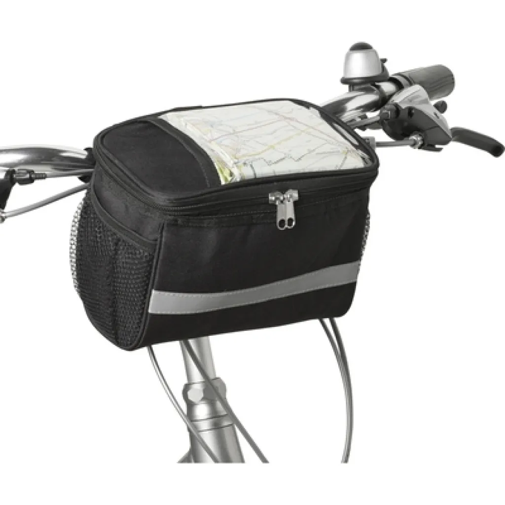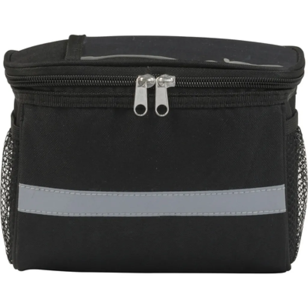 Bicycle zipped cooler bag with PVC pocket on top, reflective strap, mesh pockets on both sides