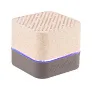 Bluetooth speaker in ecological wheat straw plastic housing with rubber bottom part, multicolour LED light and built-in rechargeable battery. With hands-free call and micro SD player functions. Including USB charger cable.