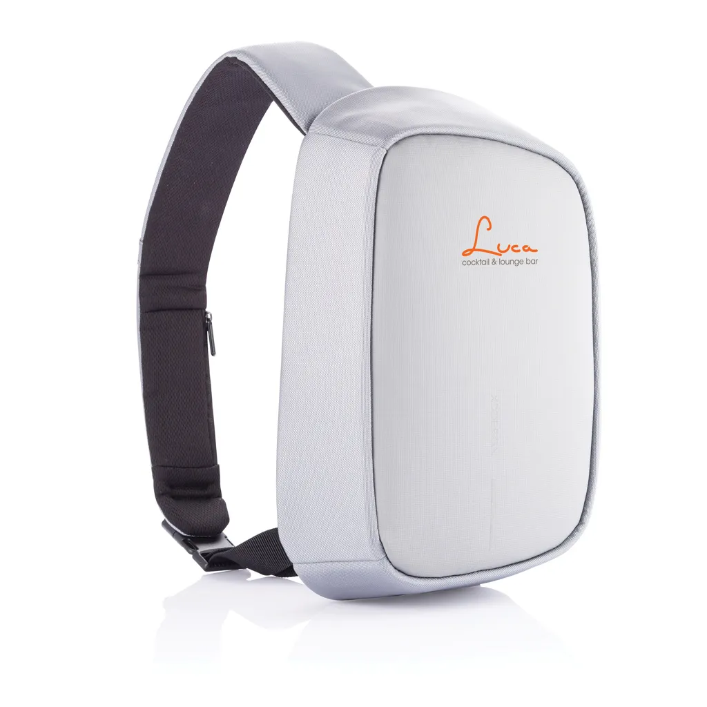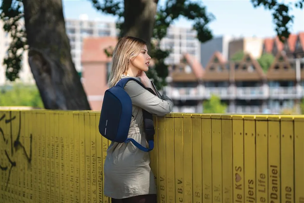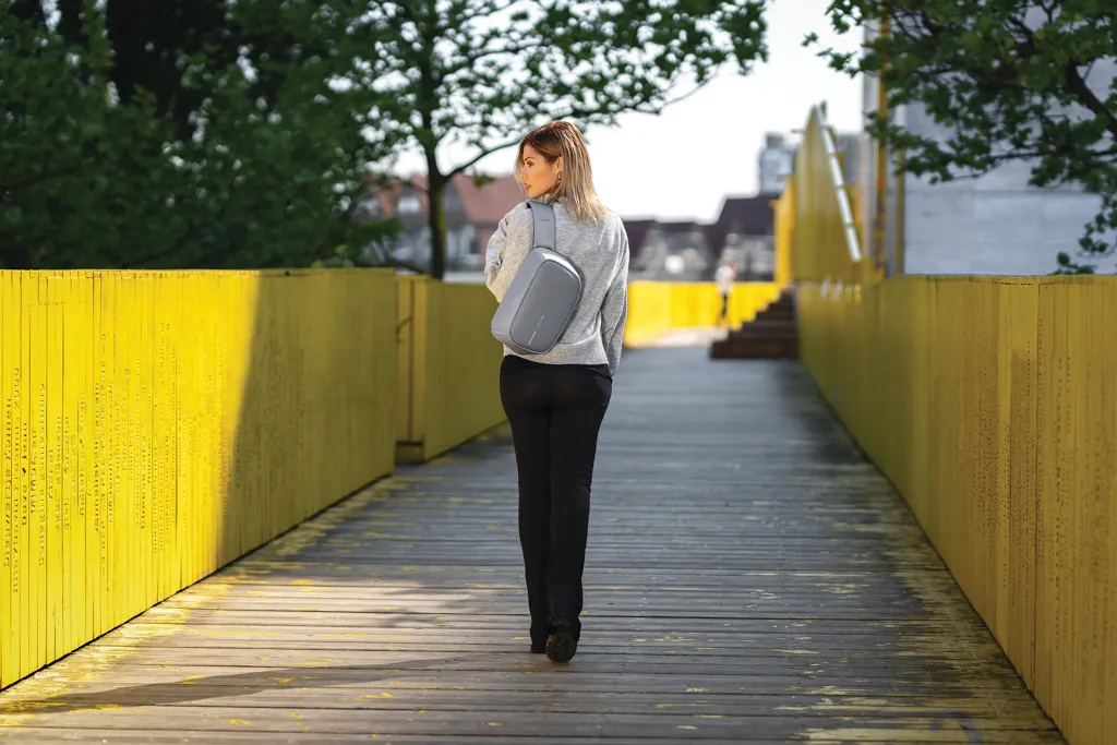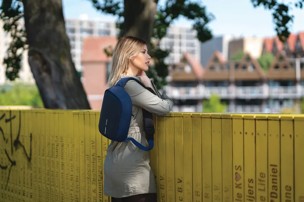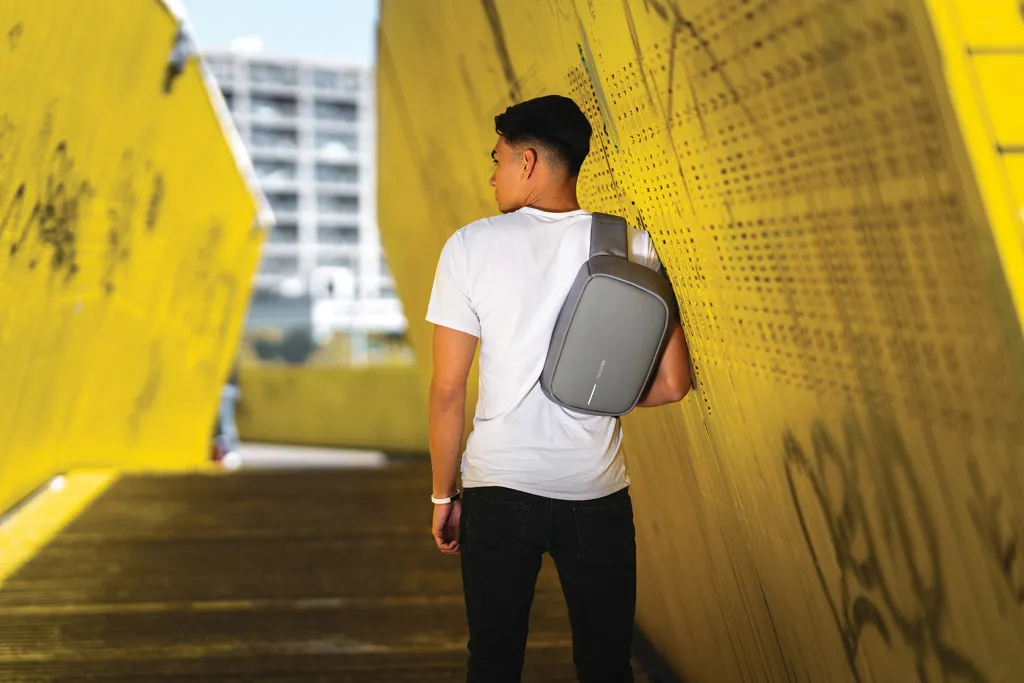Safe, comfortable and smart, the Bobby Sling was designed for the city travelers. Feel protected with the famous Bobby anti-theft features like hidden zippers, no front access, RFID protected pocket and cut resistant material, also a 3 points safe buckle will make sure that your daily essentials are always along your body. Additional features like water-resistant material and integrated USB charging port makes this crossbody backpack the most convenient option for your everyday journey.Made from R-pet materials and AWARE™ tracer. With AWARE™, the use of genuine recycled fabric materials and water reduction impact claims are guaranteed, by using the AWARE disruptive physical tracer and blockchain technology. Each Bobby Sling saves 12 liters of water and reuses 20 plastic bottles. Registered design®