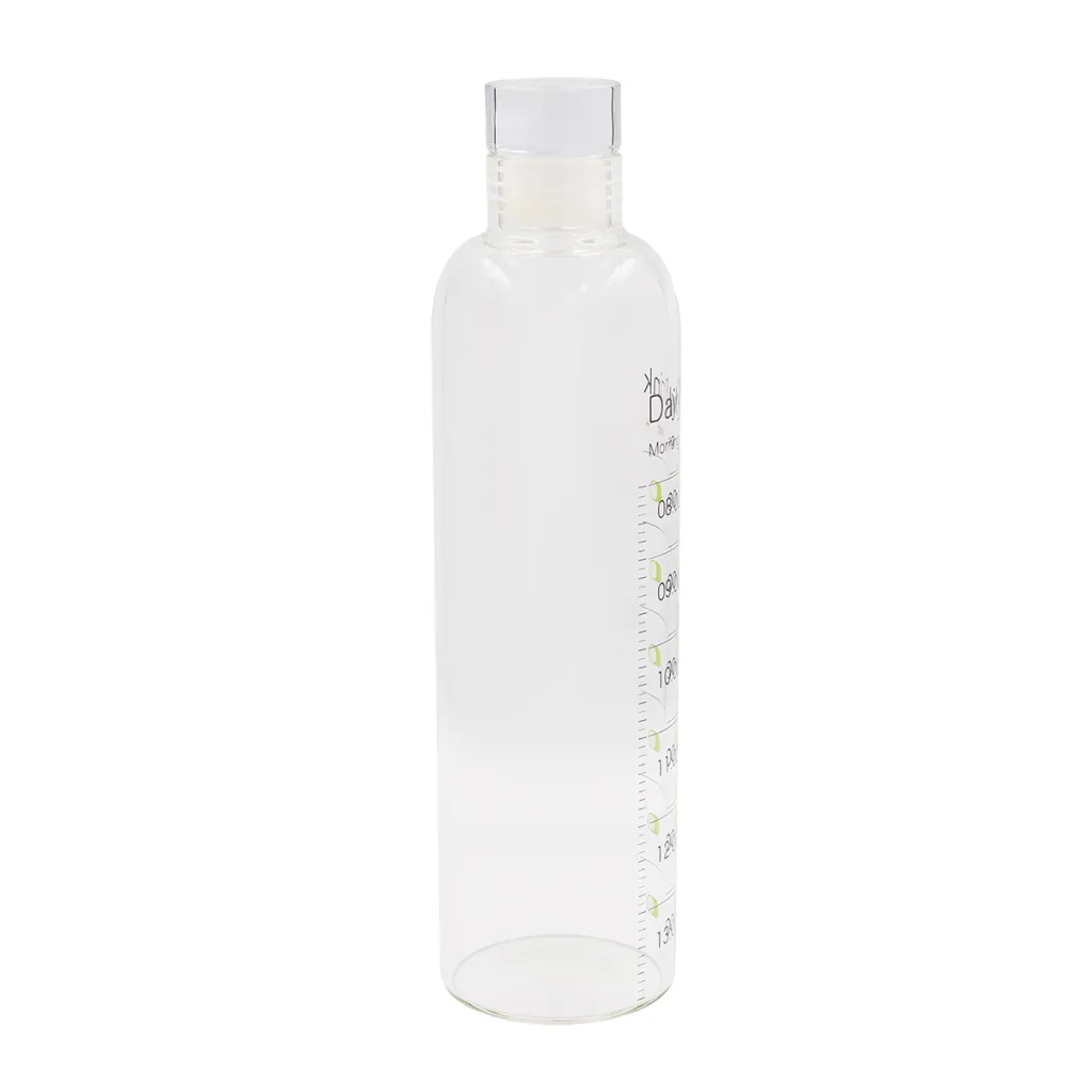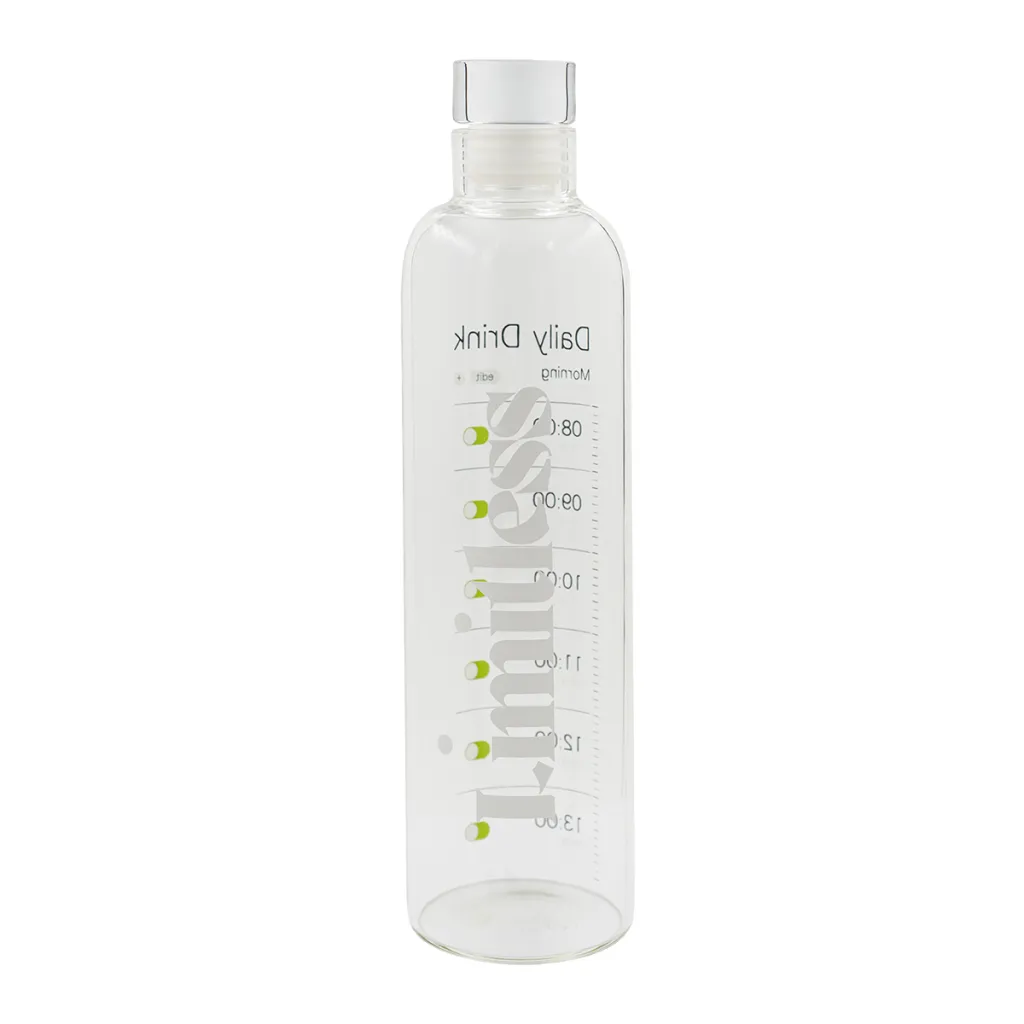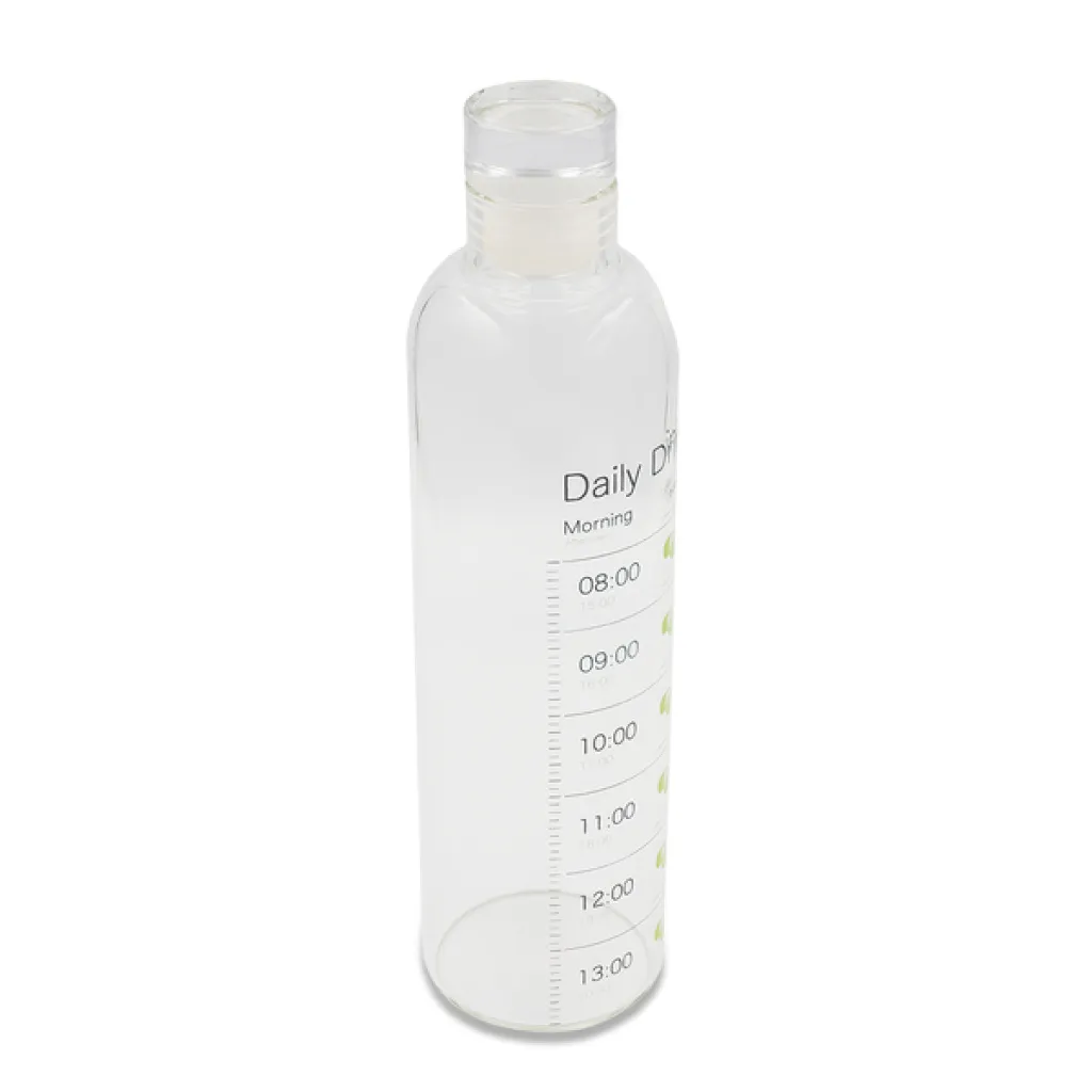 Borosilicate glass bottle with motivational print, closed with a tight glass stopper. Capacity: 550ml.
