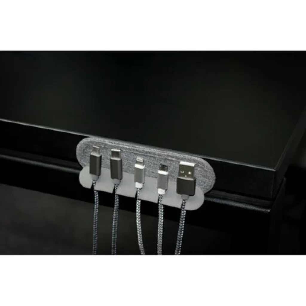 If cluttered cords around your desk, TV, computer, or phone are a hassle, Cabledock offers a simple solution. With 5 slots for cables up to 6mm, it's compatible with all charging and peripheral cords. Foldable and adhesive-backed for easy placement.