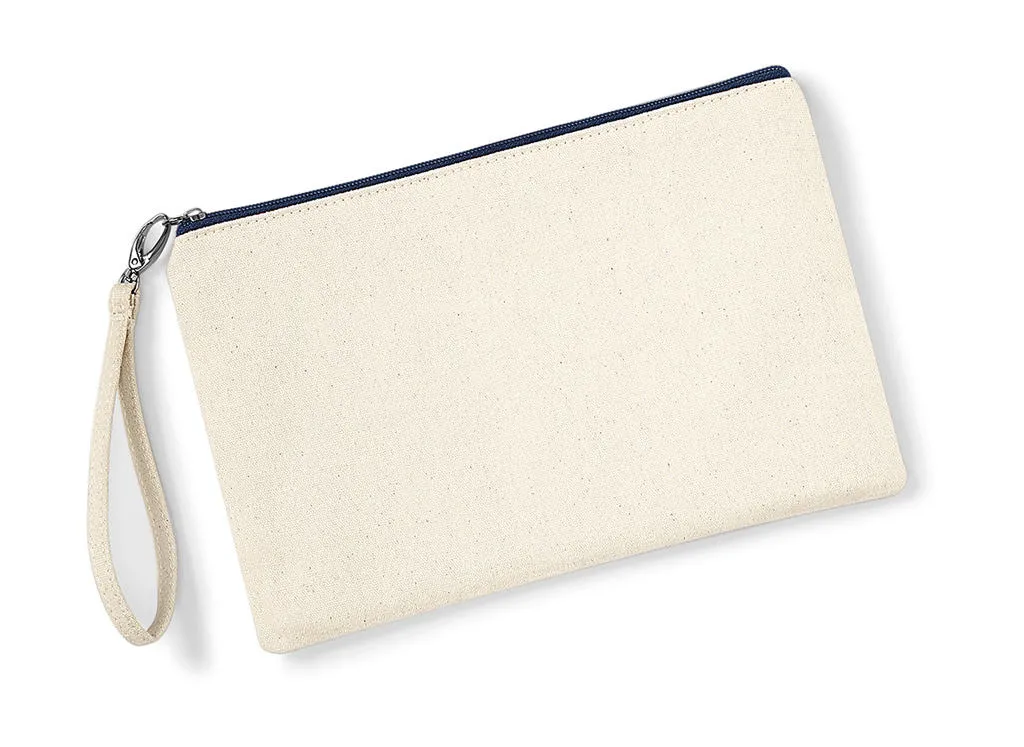 ·407 g/m² ·100% Cotton (Brushed Canvas) ·Premium heavyweight fabric ·Zip in contrast colour ·Detachable wristlet strap (Handle length: 15 cm) ·Capacity: 1 Litres ·Dimensions: 26 x 17 cm ·Max. embroidery: 12 tubular hoop ·Max. print area: 21 x 13 cm.