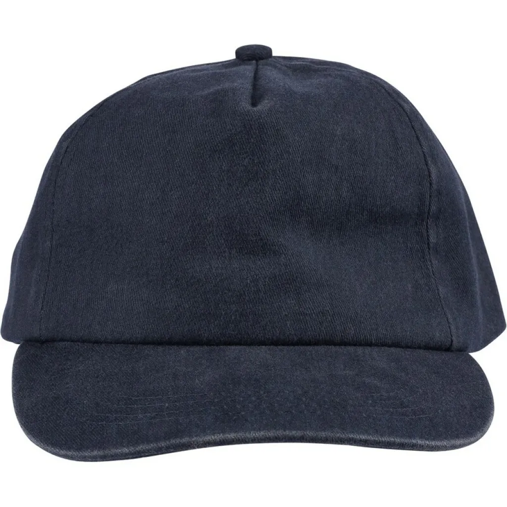 Cap with a washed finish, featuring a 5-panel design and a 7 cm visor, adjustable fit with a brass buckle closure, no lining inside, product made from cotton (240 gsm)