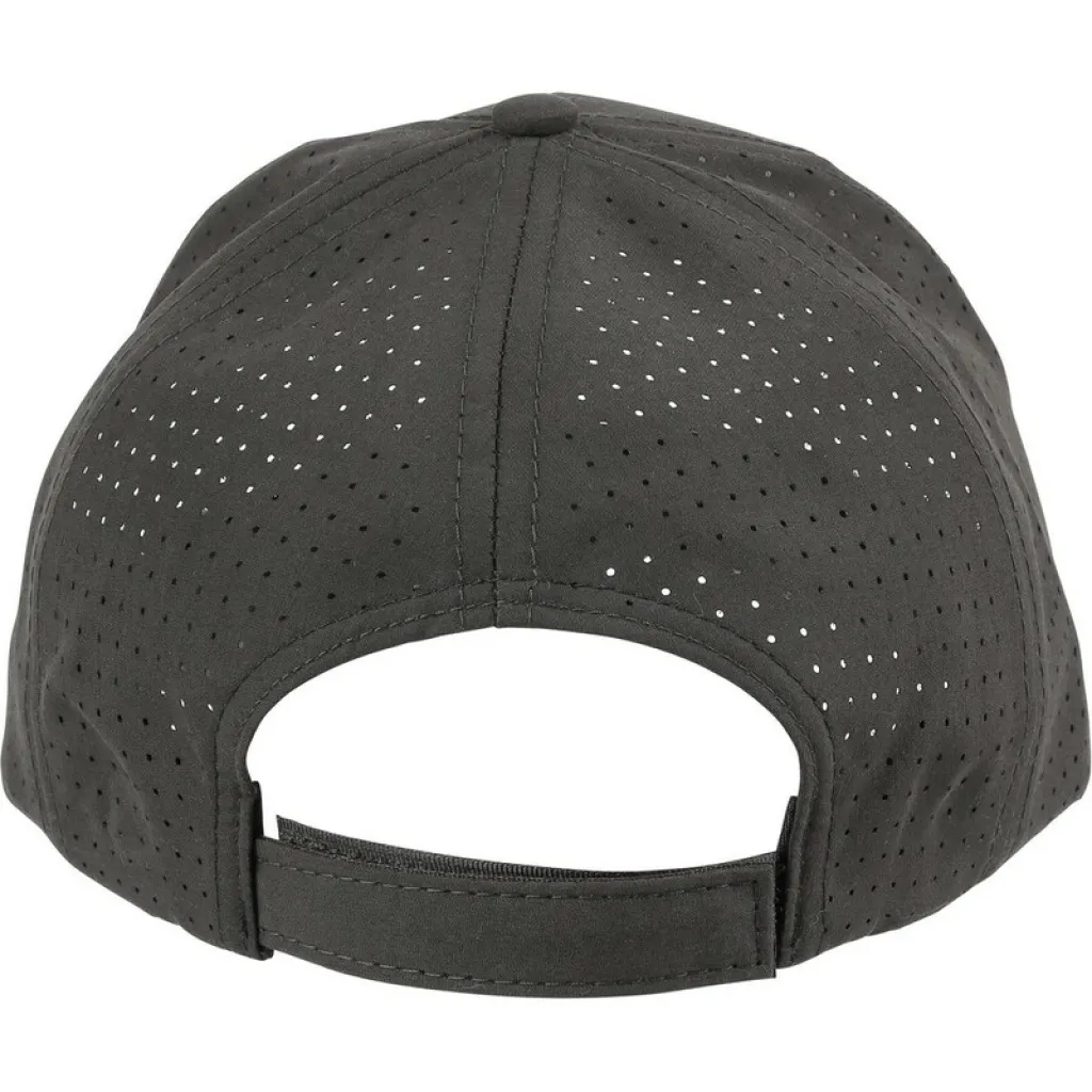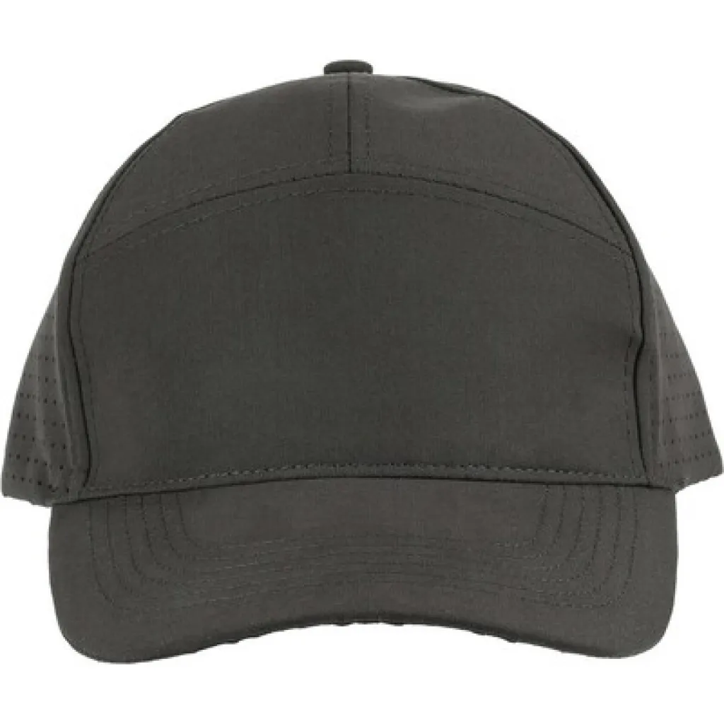 Cap with laser-cut ventilation holes on the back panels, features a 7-panel design with one panel at the front and a 7 cm visor, adjustable and breathable, without a PU label, product made from polyester