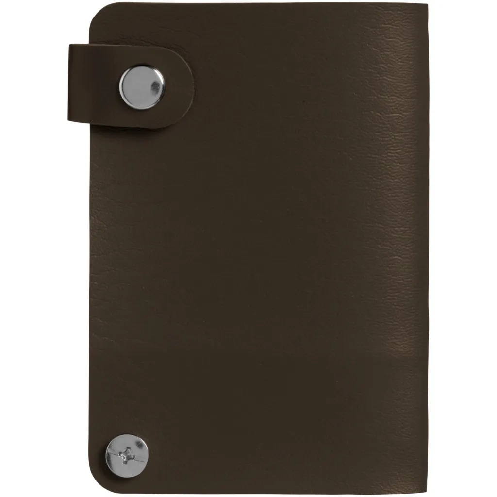 Card holder booklet with 10 slots to hold your credit cards and snap button closure.
