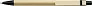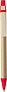 Cardboard ballpen with wooden clip and plastic parts. Blue ink.
