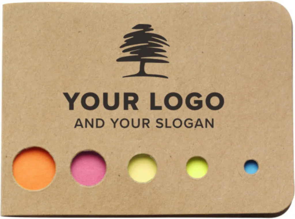Card cover holding five different colored self adhesive memos, each with 20 sheets. Cover: 300g/m², sticky: 75g/m².
