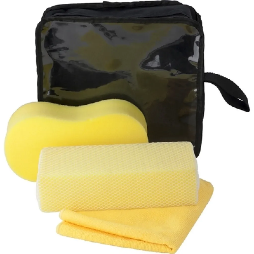 Carwash set in pouch, includes: sponge, sponge with net and microfiber cloth (35 x 35 cm)