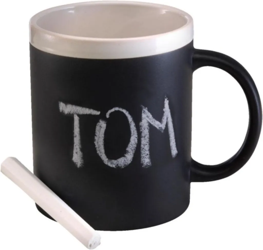 Stoneware mug (300 ml) with a black panel for drawing. Including a piece of chalk (sold per 36 pieces).