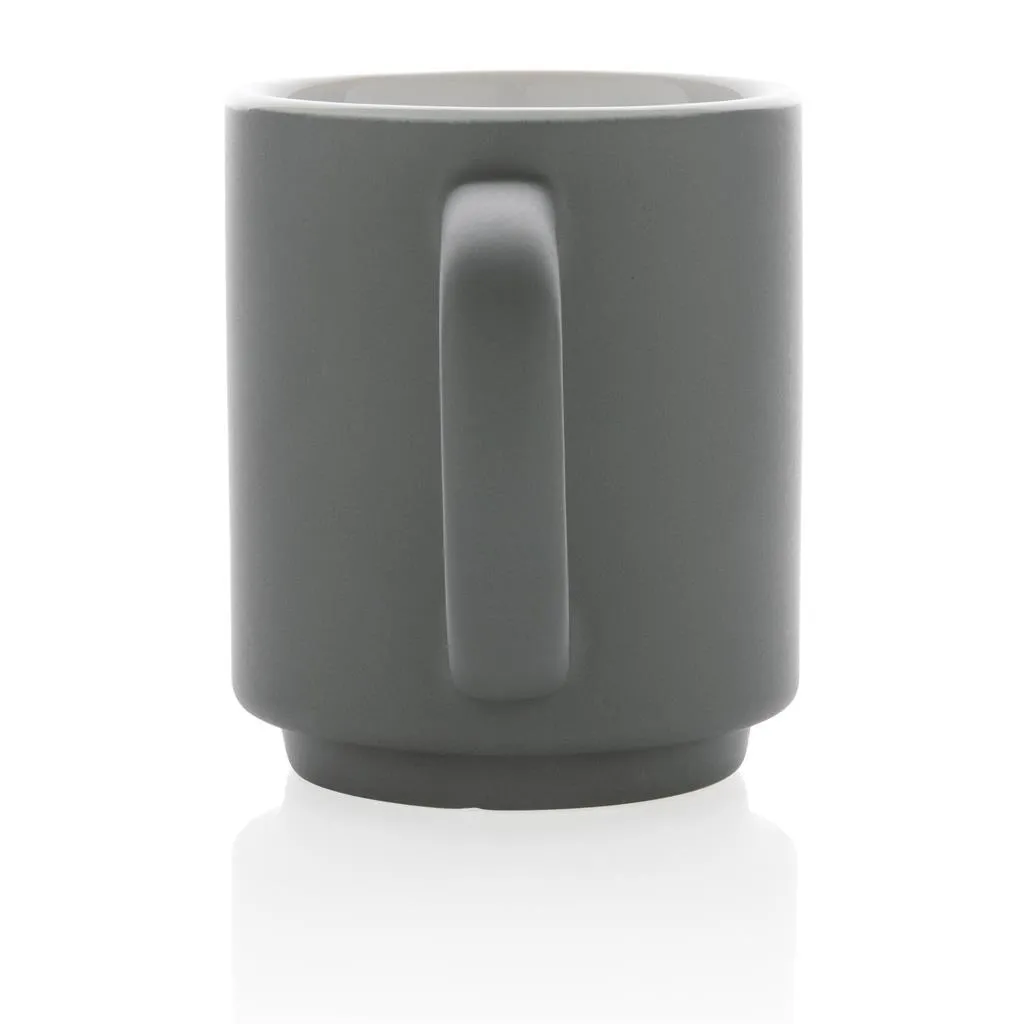 These stackable ceramic mugs are easy to store neatly and will save you a lot of space. Handy in your cupboard! The mug is dishwasher safe and tested in accordance with EN12875-1 (at least 125 washing cycles for all decoration methods). Packed in a kraft gift box. Capacity 180ml.