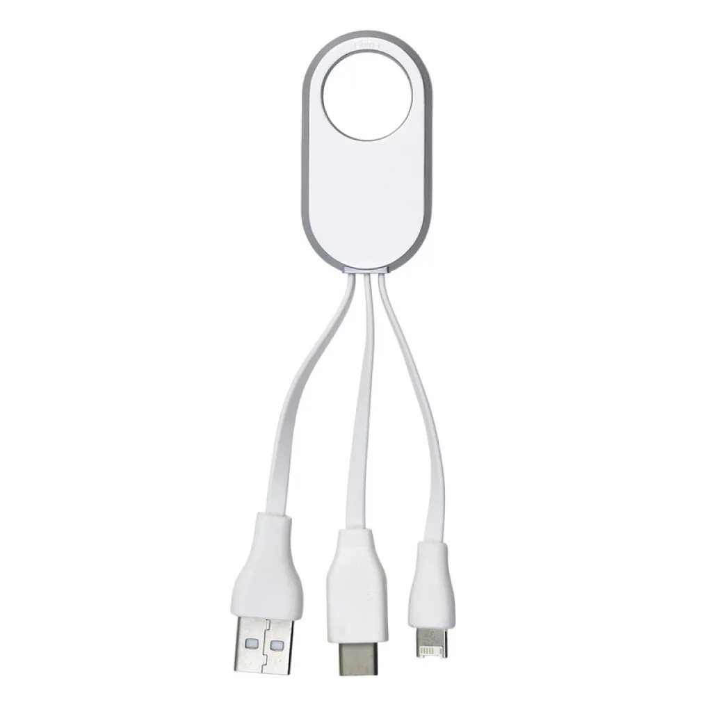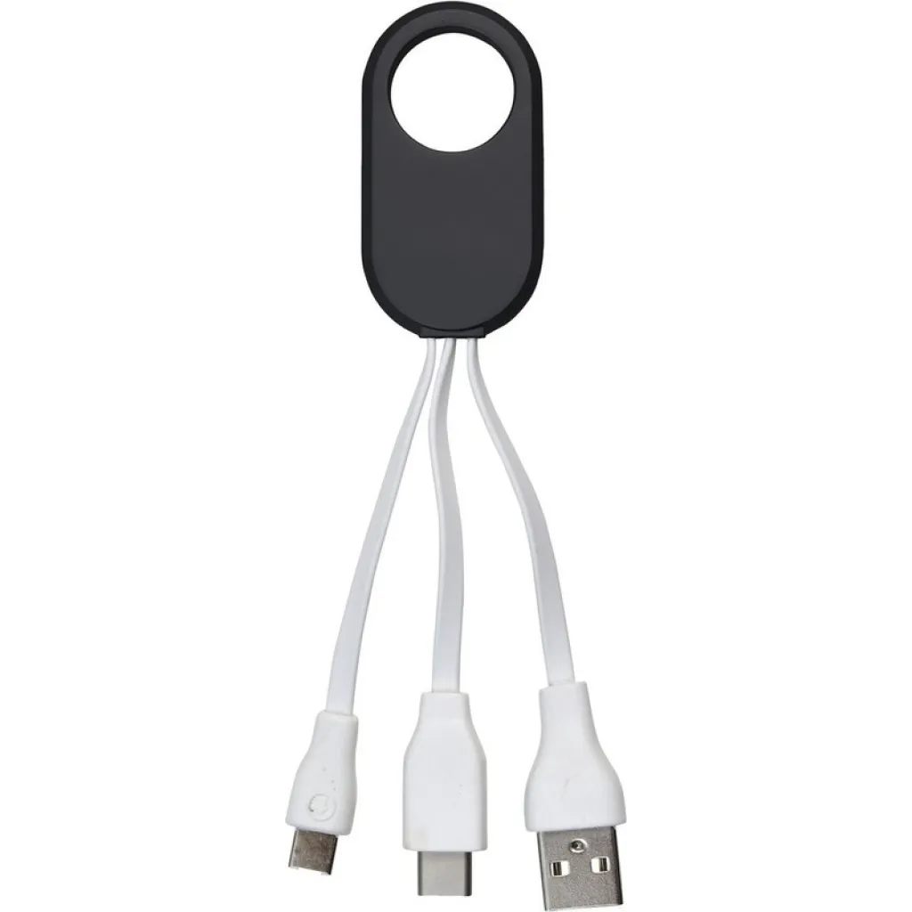 Charger cable set with three plugs: USB, USB type C and 2in1 (micro USB and compatible with iOS devices)