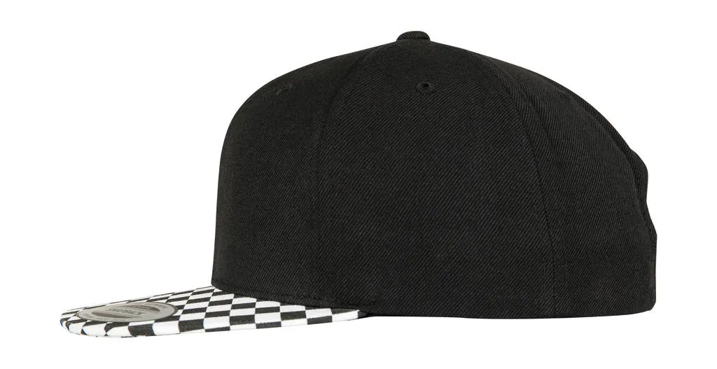 ·80% Polyacrylic, 20% Wool ·Peak: 60% Cotton, 40% Polyester ·Checkerboad pattern on peak and undervisor ·Classic shape ·6 panels ·Snapback closure.