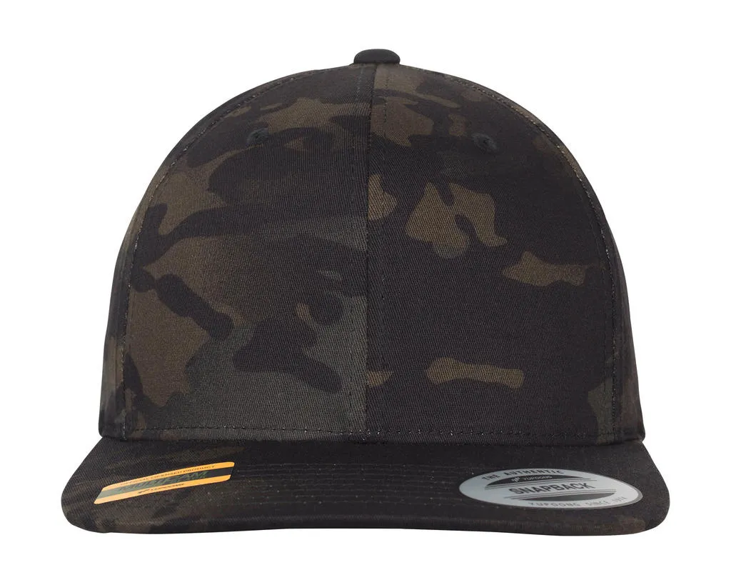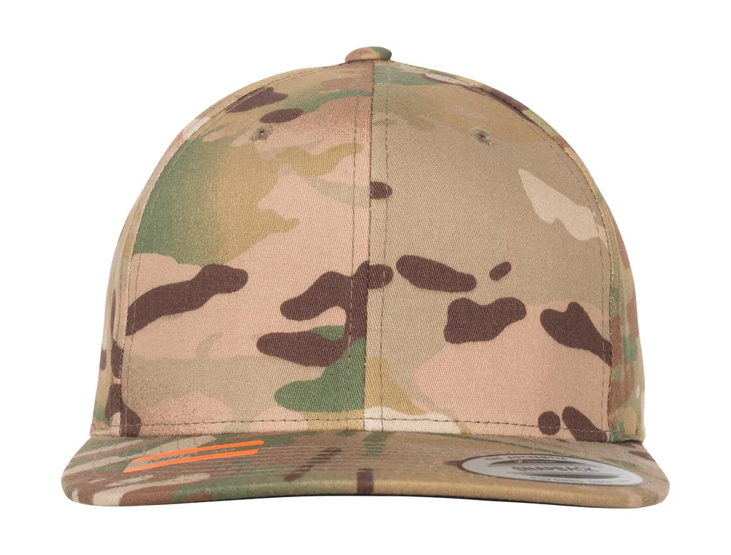·239 g/m² ·98% Polyester, 2% Elastane ·Multicam pattern (spiecial Camouflage pattern) ·Classic shape ·6 panels ·Flat peak with 8 rows of stitching ·Black undervisor ·Snapback size adjuster.