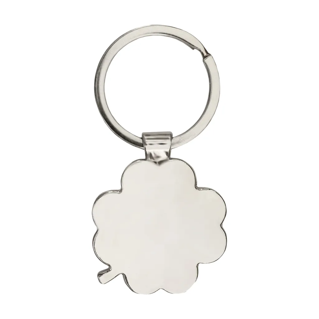 Four-leaf clover keyring made of wood and metal. Packed in black gift box.